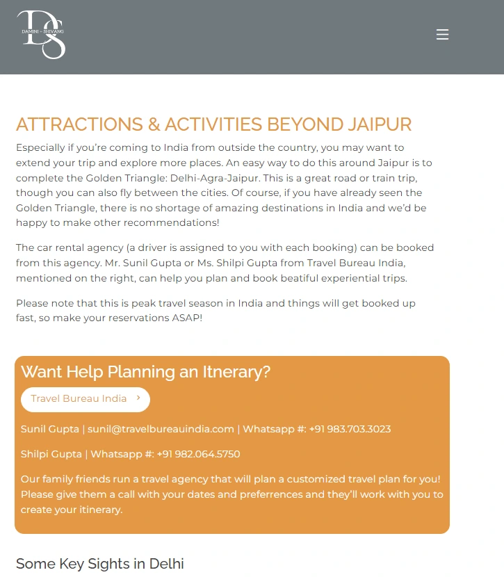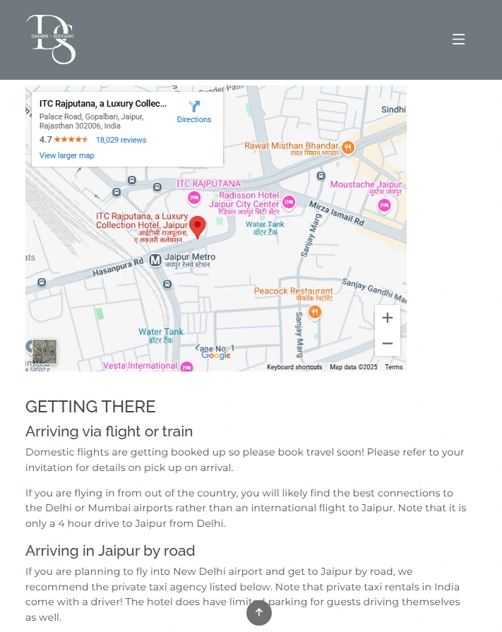 I initially presented them with 3 broad website layouts, and choosing one, the clients gave me the pictures and content to built the initial site. Over the course of the next two months, I both updated content as well as created sections promptly as they finalized details.