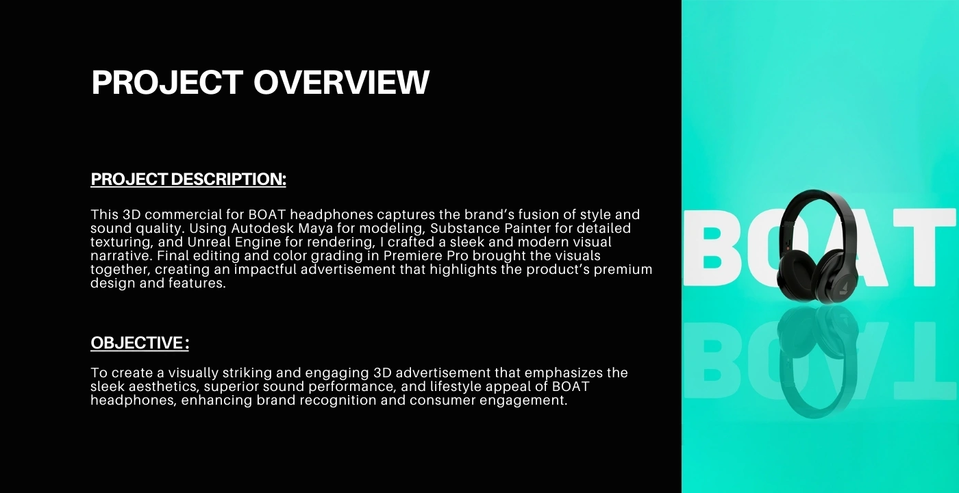 This 3D commercial for BOAT headphones captures the brand's fusion of style and sound quality.