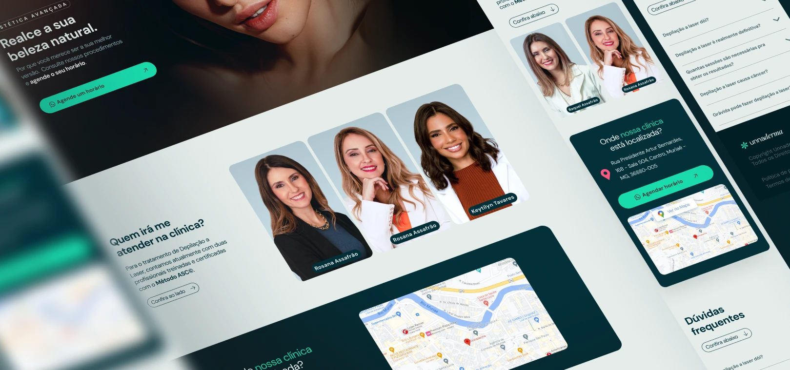Estes foram os principais atributos que buscamos ao desenvolver o projeto desta marca. Cuidar da saúde e beleza de homens e mulheres é o propósito maior . Por isso, a marca deve relevar a sua missão. A combinação de recursos modernos e clássicos, simples e deelicados, reforçam cada ato de cuidado e presença que a Unnaderma transmite