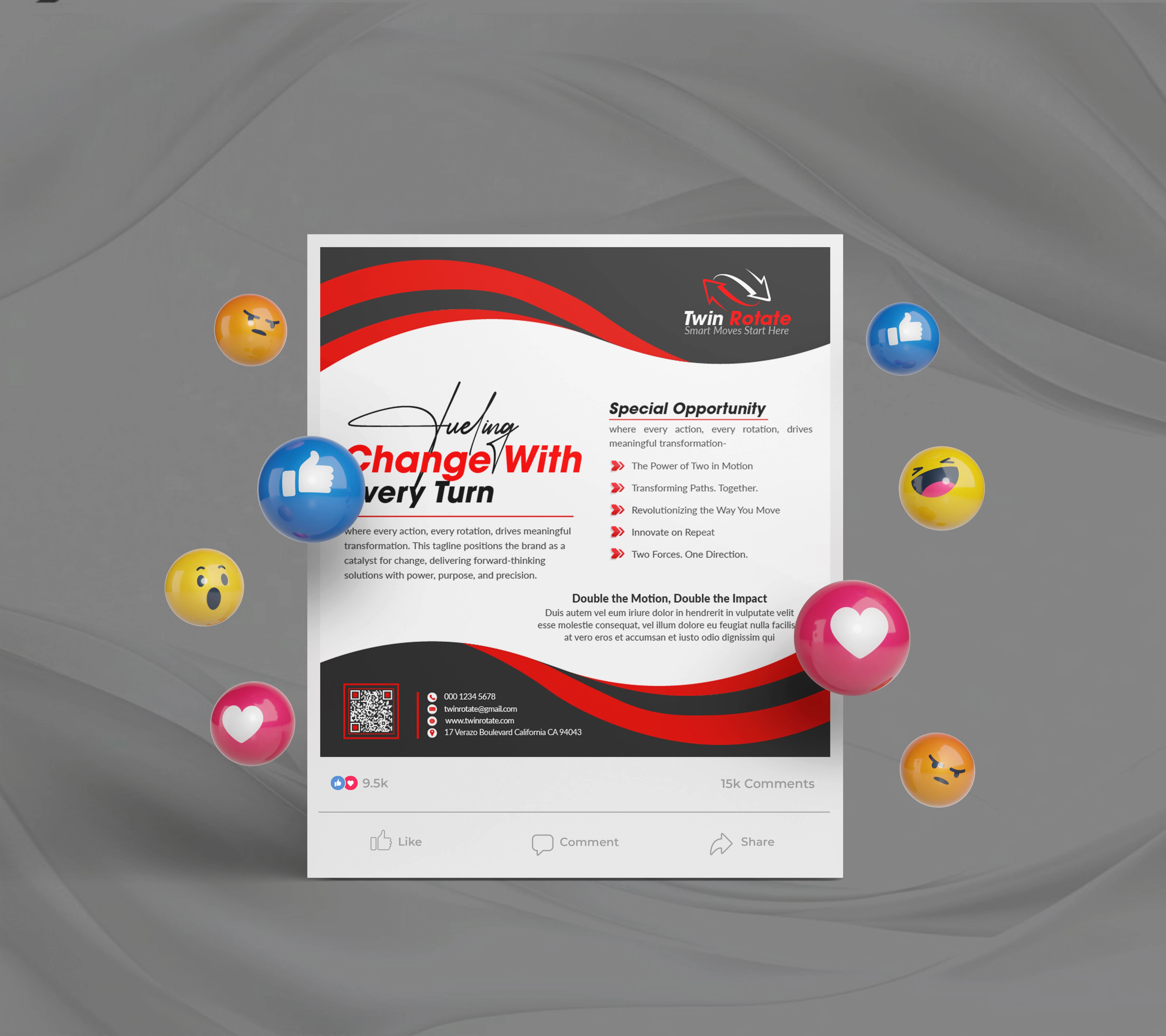 In this project, I had the opportunity to work with the brand TWIN ROTATE START MOVES HERE to develop their complete branding identity from scratch. The goal was to create a modern, energetic, and cohesive brand that reflects the movement and innovation behind their name.
