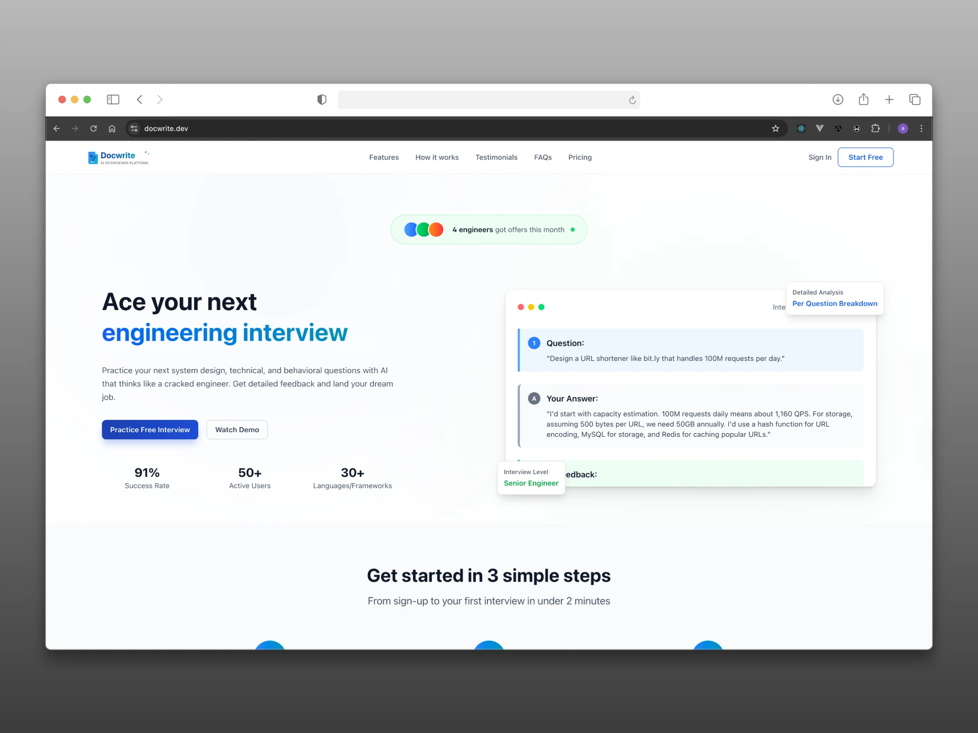 The platform enables engineers to engage in authentic back-and-forth conversations with an AI interviewer, simulating the real interview experience where explaining your thought process is just as important as reaching the right answer. With millions of software engineers globally struggling with the communication demands of technical interviews despite strong coding abilities, Docwrite fills a significant gap in the interview preparation market.