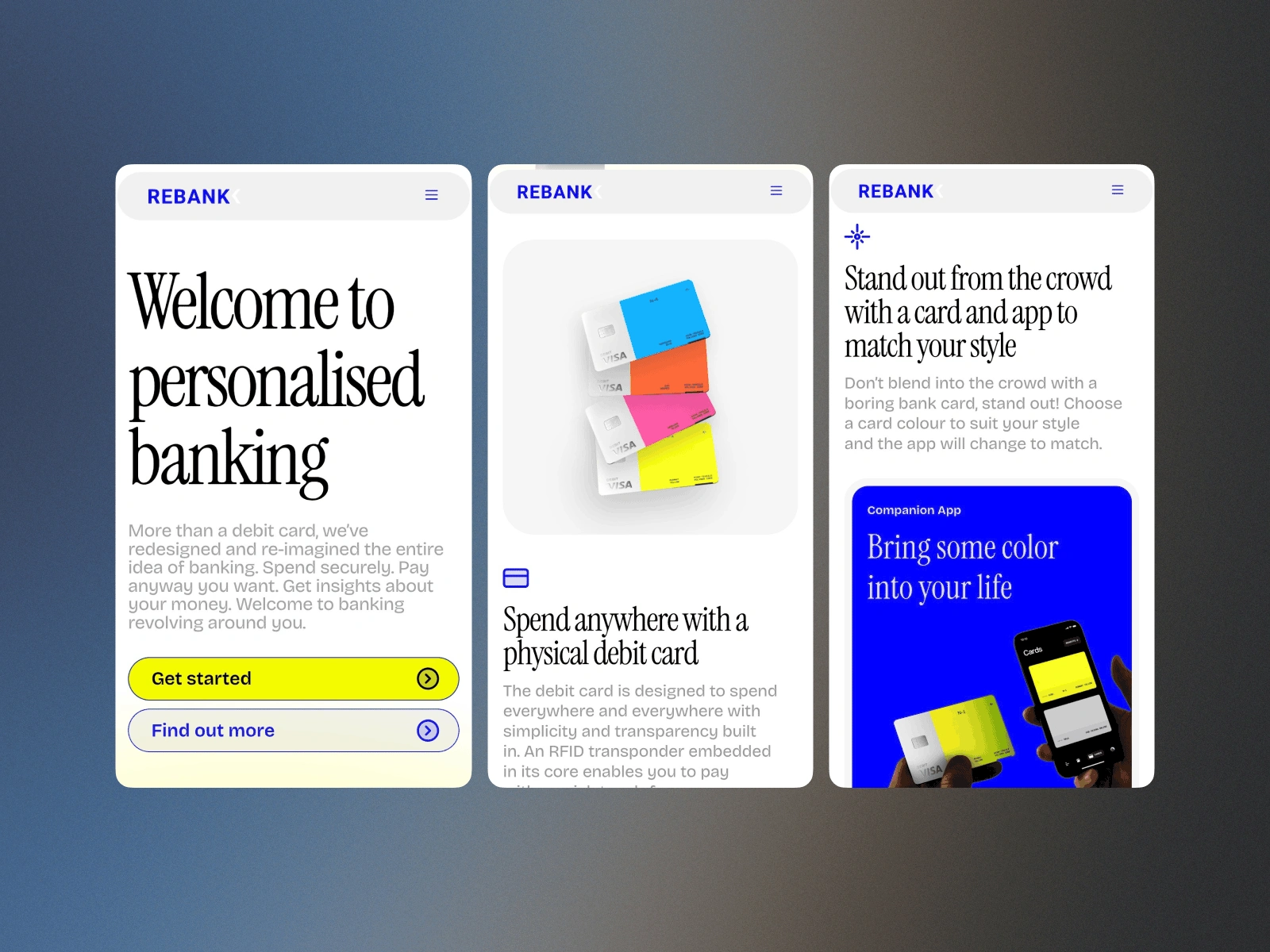 Rebankk is a modern finance platform concept brought to life through a website redesign, designed and published using Framer, a no-code website builder. Before beginning the project, I carried out a detailed briefing, competitive analysis, and an industry-wide visual review. These insights shaped the foundation of the site’s overall visual direction.