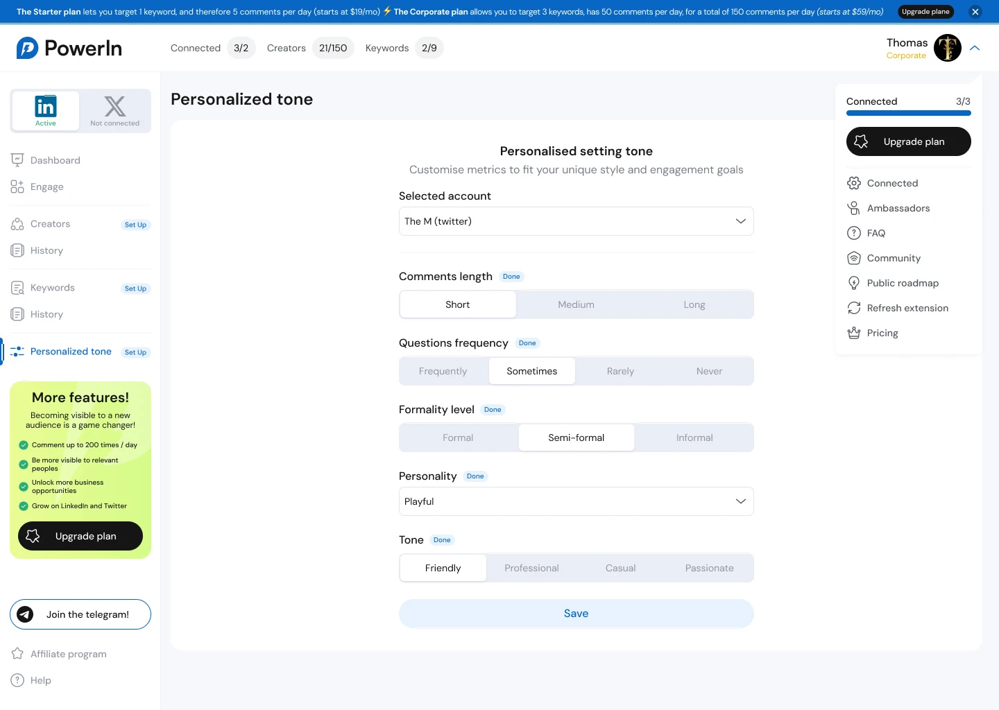 The platform provides seamless user management with sign-up, sign-in, and a trial period, allowing users to explore the product before subscribing. A central analytics dashboard gives real-time insights into engagement metrics, post performance, and overall trends, structured through clear UI UX design and modular web design layouts.