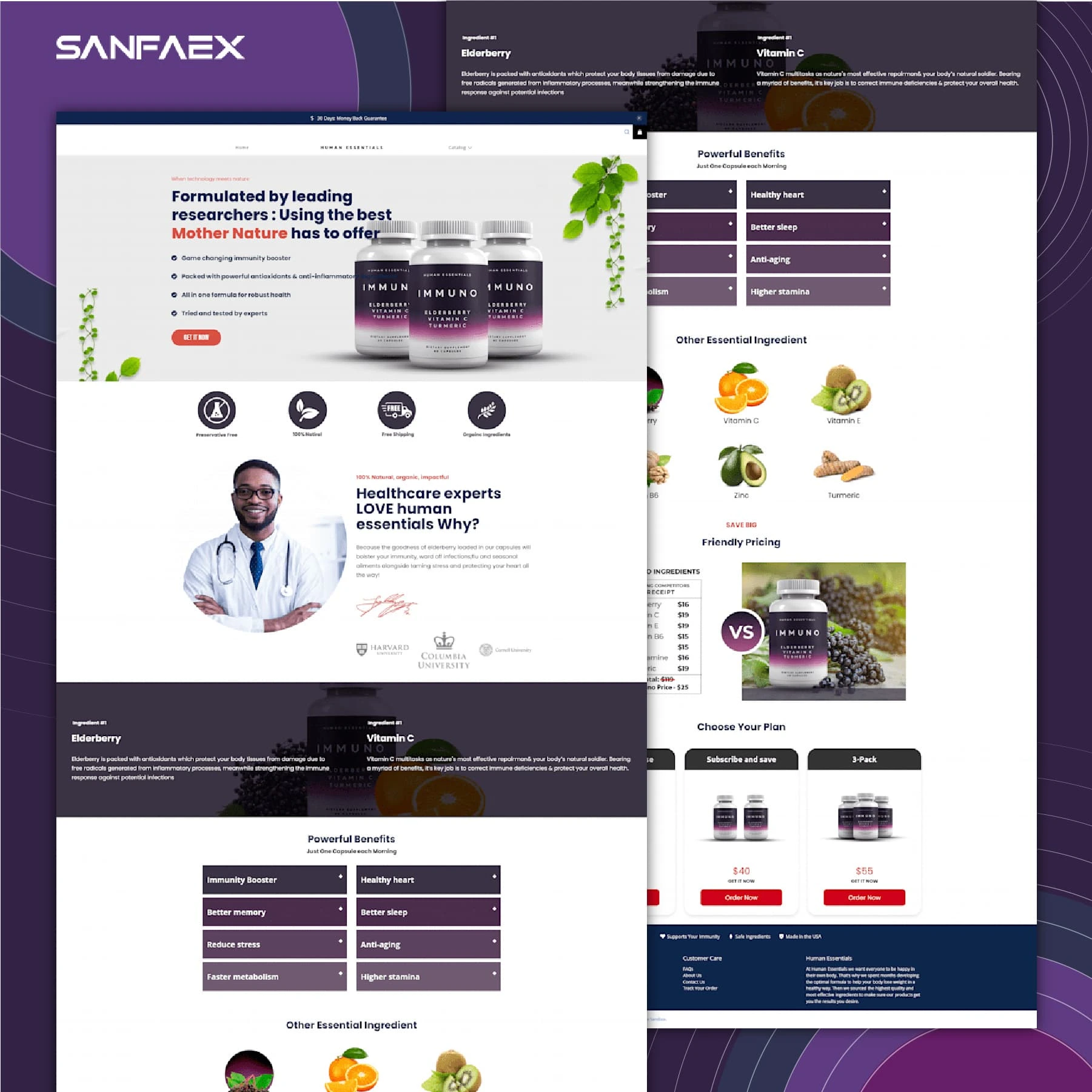 Designed and developed a conversion-focused Shopify store with a sleek, modern aesthetic tailored to the supplement niche.