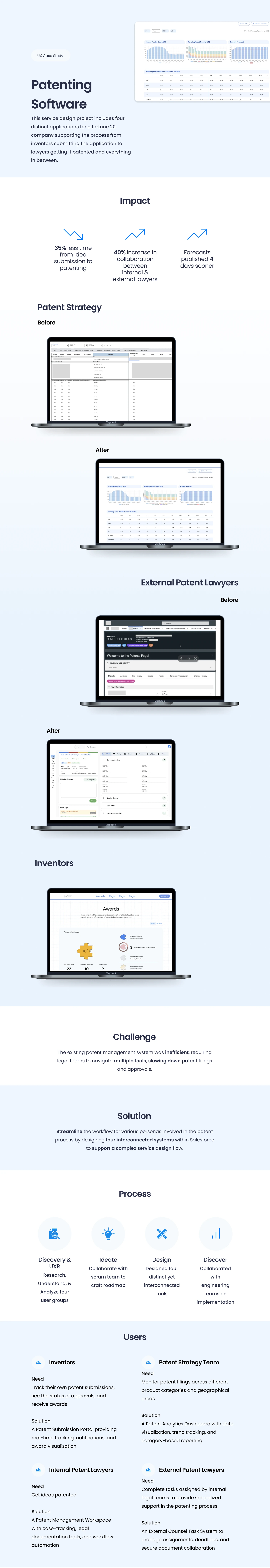 -Decreased time from patent submission to approval by 15% -Developed reusable UI components consistent across multiple CRMs