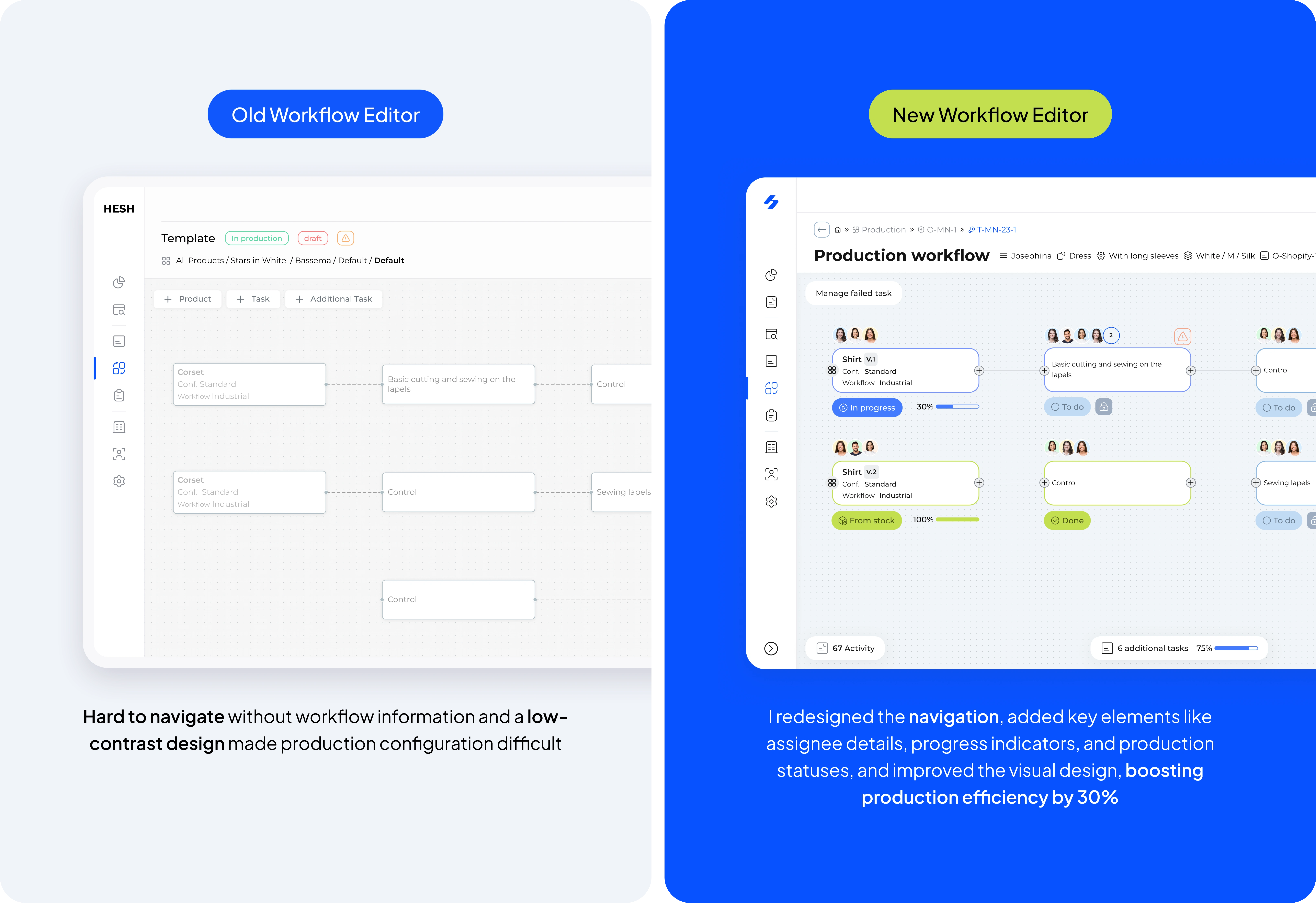 We focused on the top-priority features that required the most substantial redesign: the Production and Workflow Editor flows