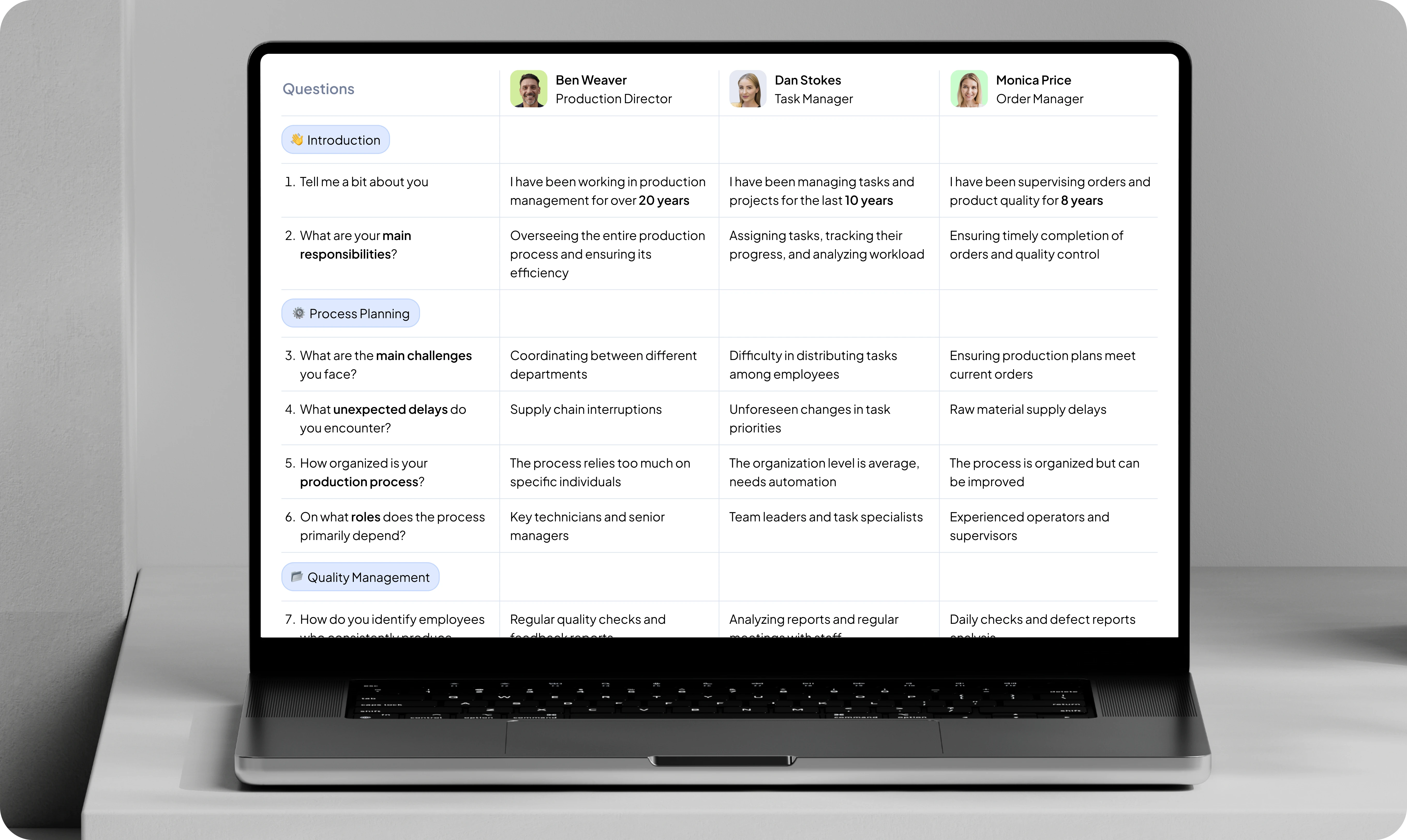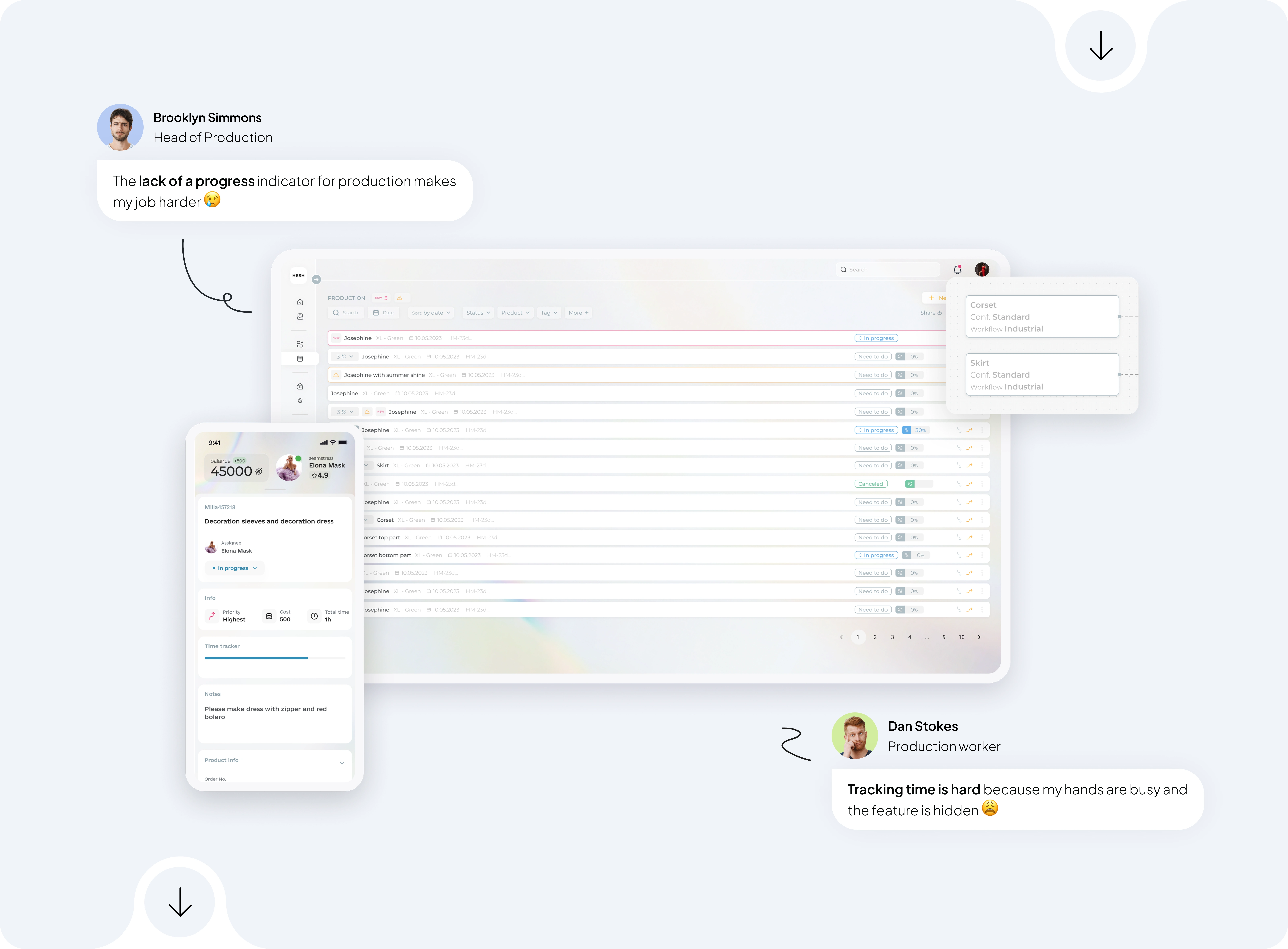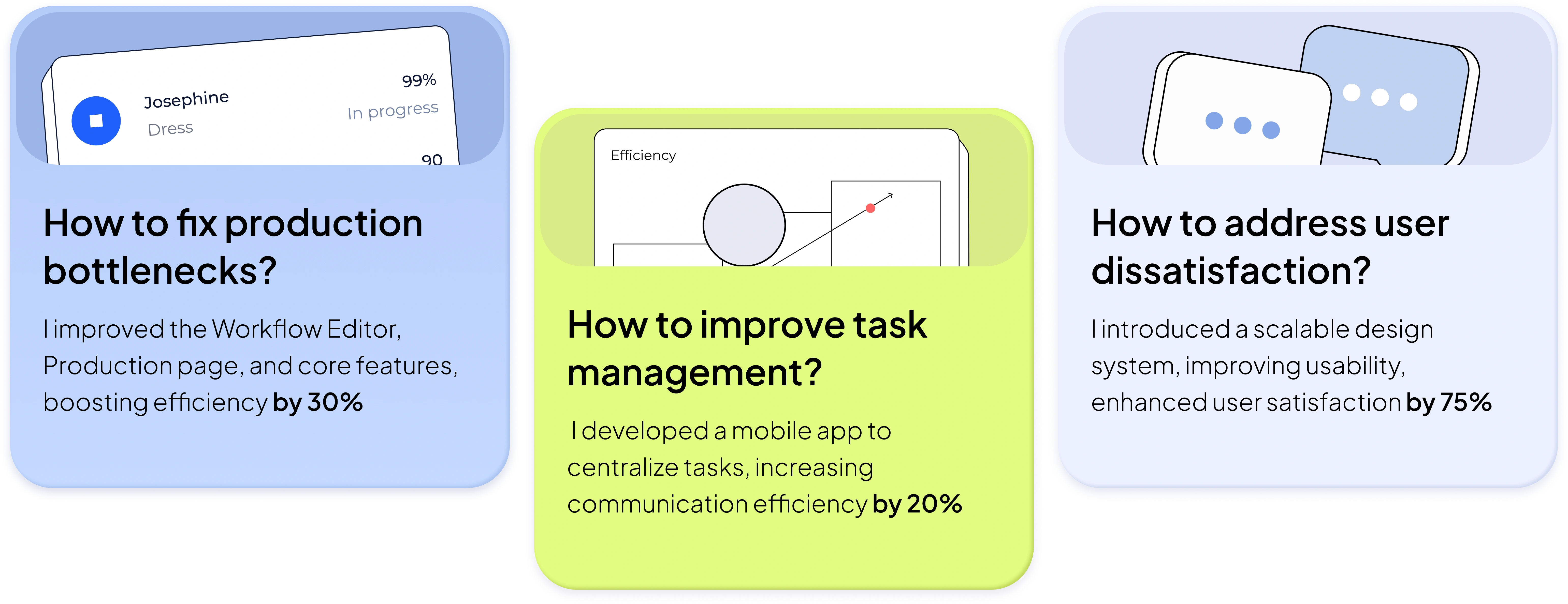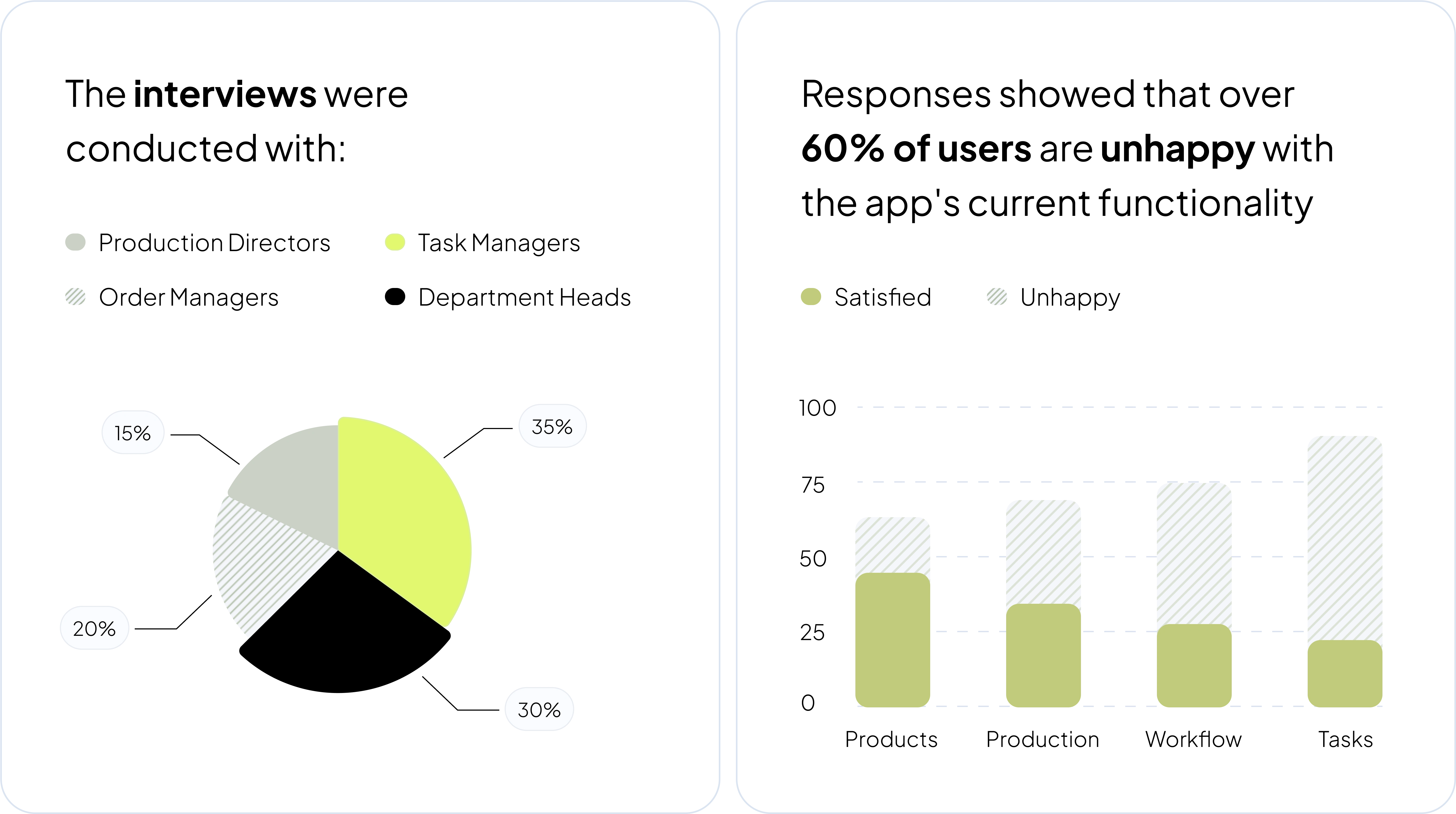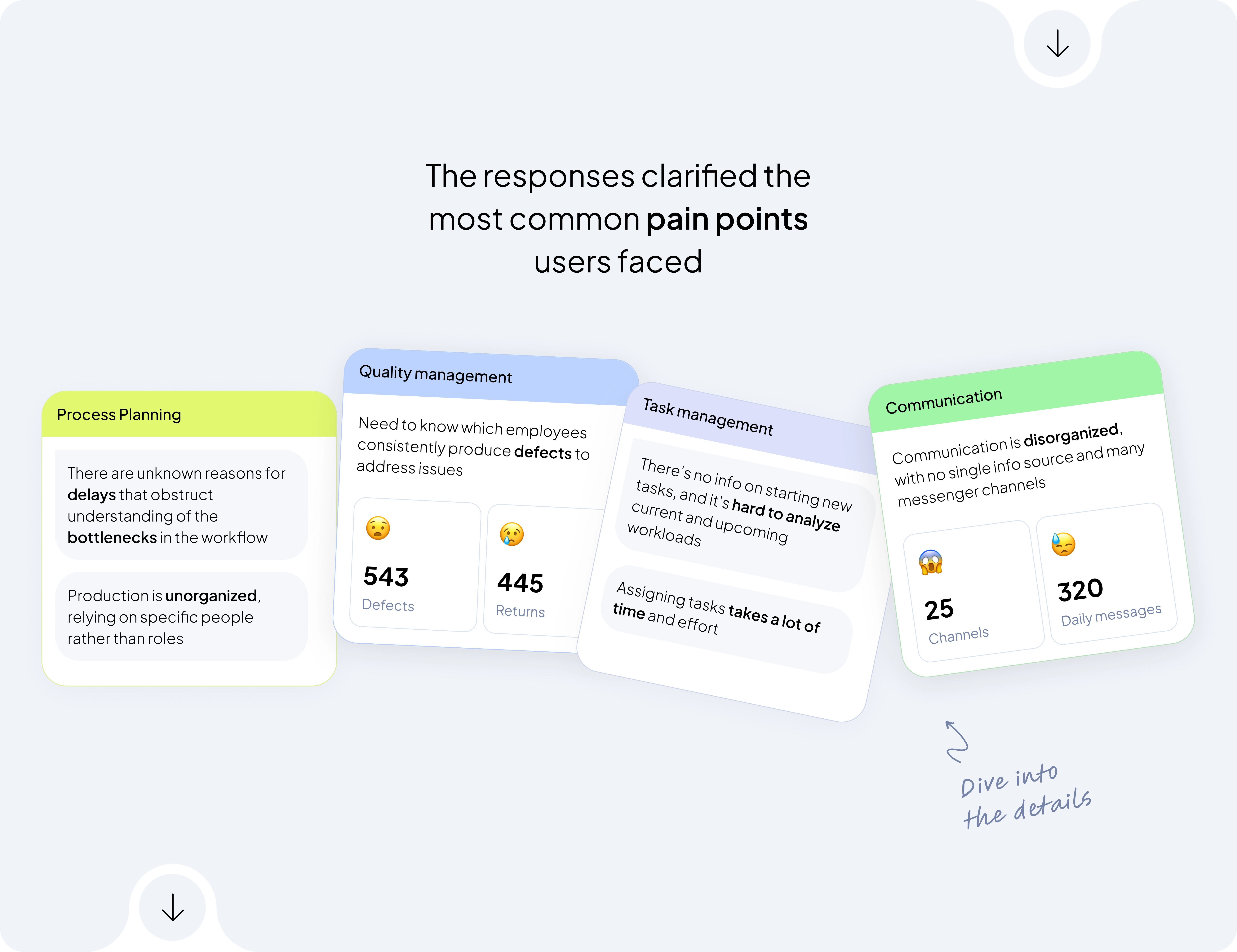 Conducted 50+ user interviews to uncover production inefficiencies and communication gaps