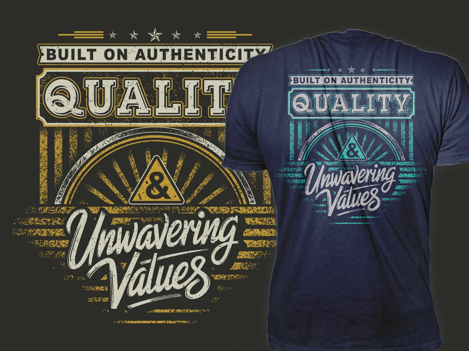 Created a T-shirt design featuring 'QUALITY' and 'Unwavering Values' to enhance brand identity.