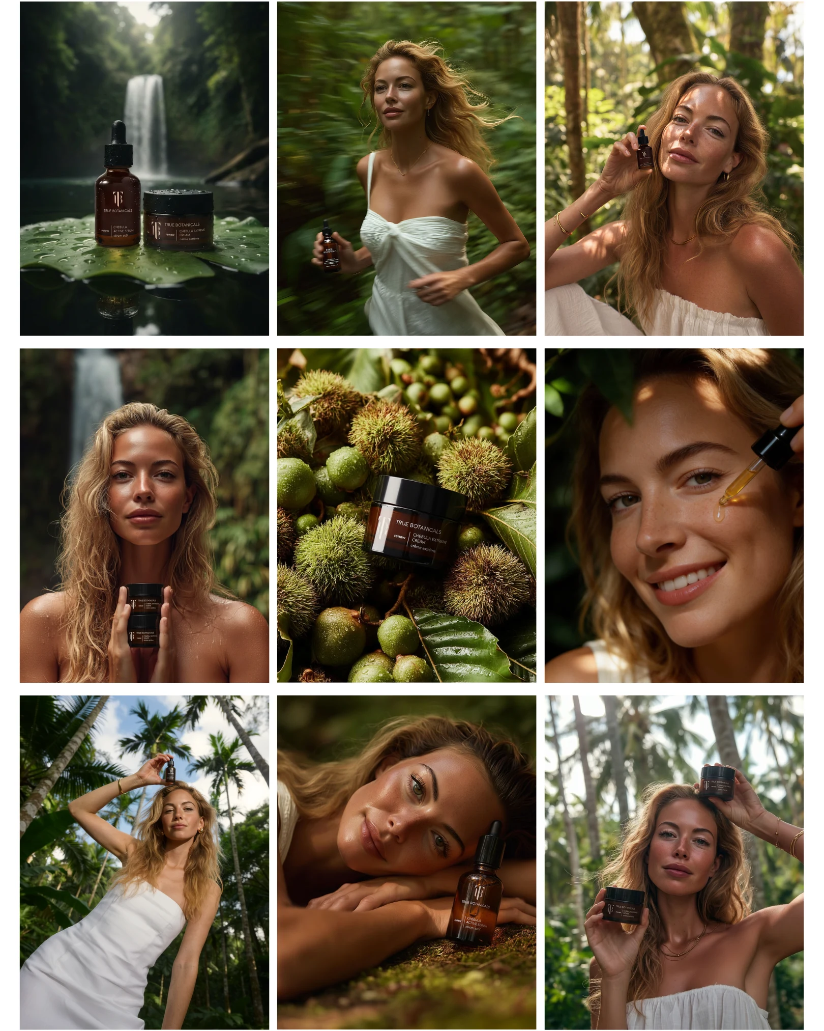 The final image set presents a cohesive, brand-ready skincare campaign that balances realism with aspiration. The project demonstrates how AI-assisted workflows can be used thoughtfully to create premium visuals that feel intentional, tactile, and aligned with established luxury skincare brands.