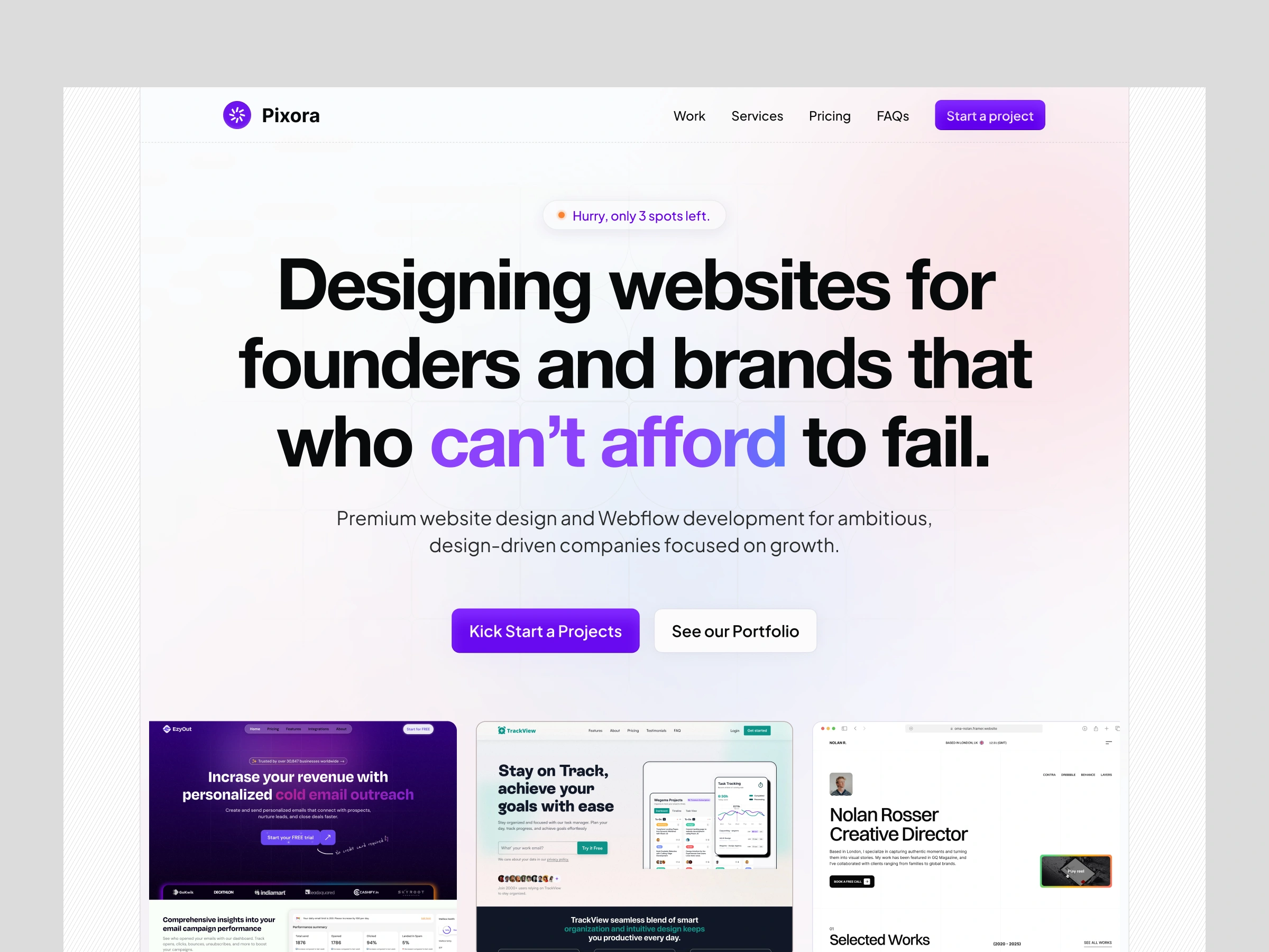 Pixora is a forward-thinking design & development agency that brings ideas to life using no-code technology. The goal was to craft a sleek, modern website that reflects their creative energy and tech-savvy approach.
