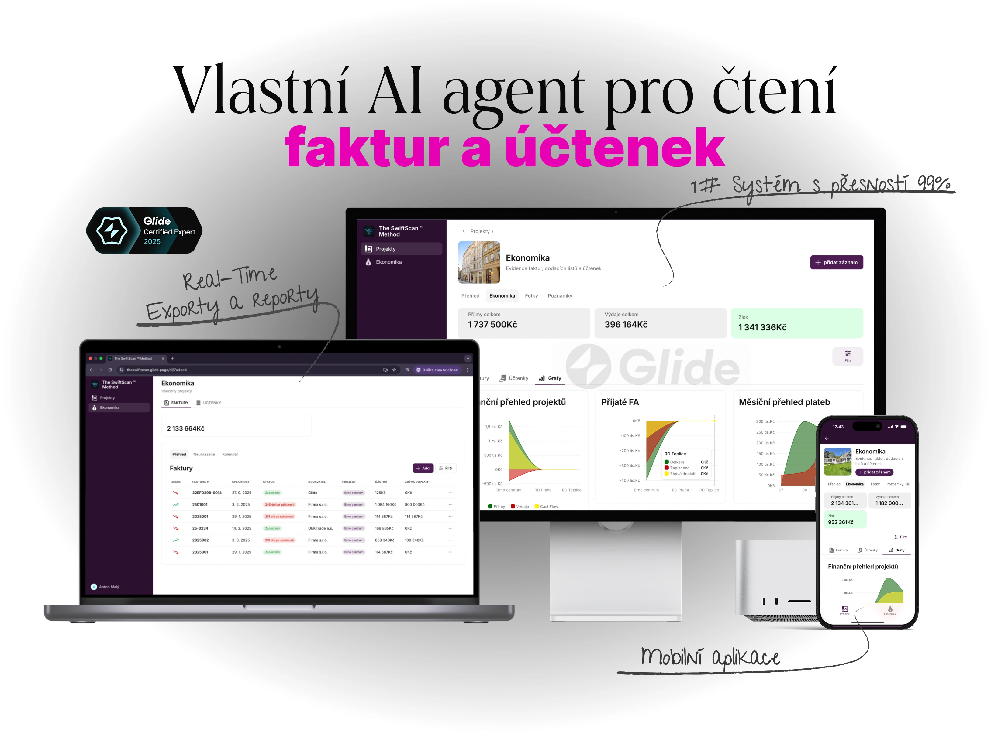 Mistr dostane fakturu na stavbě → vyfotí mobilem → pošle do aplikace.