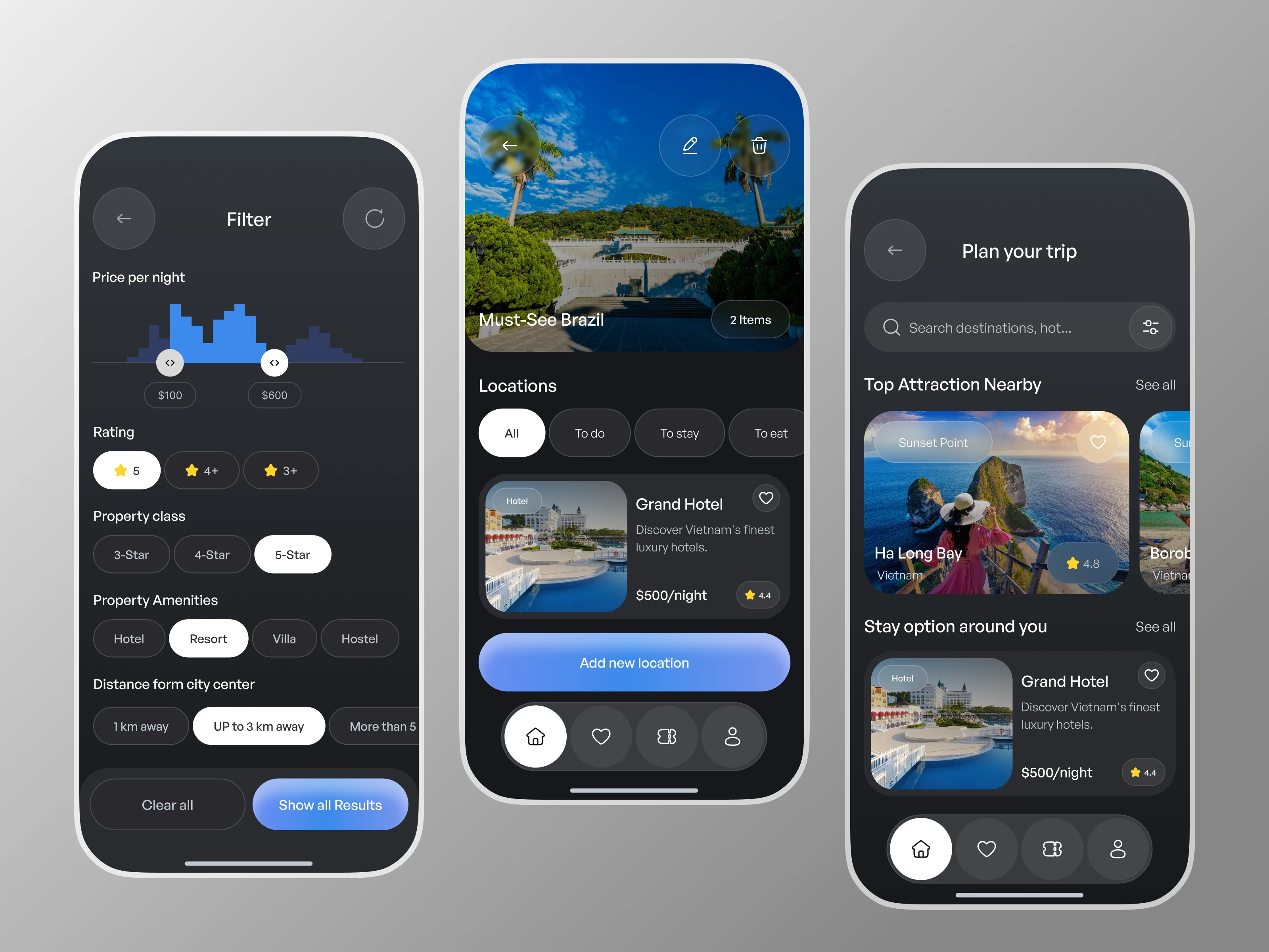 I focused on balancing aesthetics with functionality — making the app feel both stylish and practical for real travelers looking to plan memorable trips.