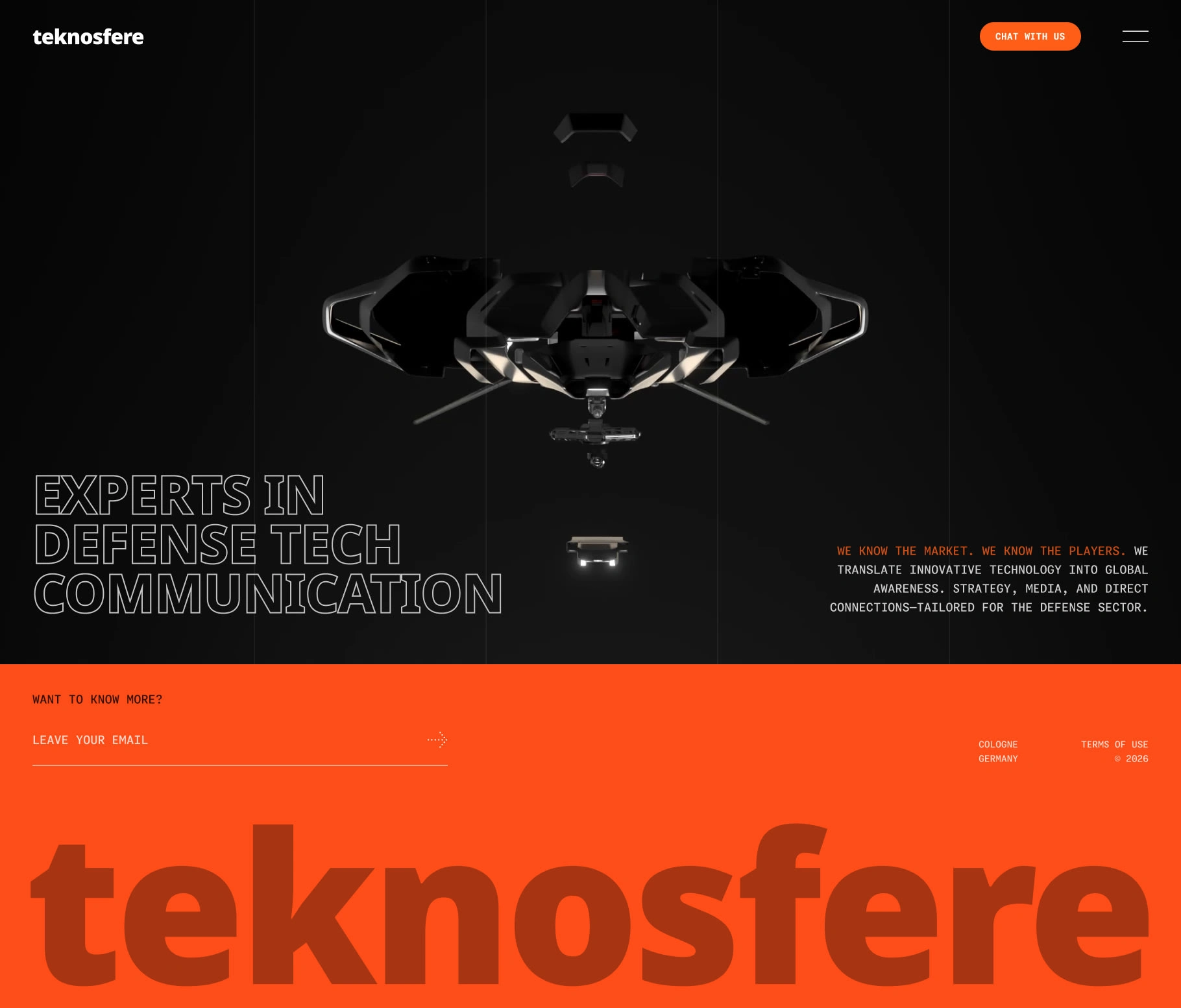 Teknosfere is a specialized defense tech marketing and communications agency based in Germany, operating across global markets. They needed a website that reflected the precision, authority, and forward-thinking nature of their brand — while standing out in a sector where most competitors rely on generic corporate aesthetics.