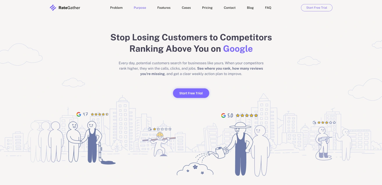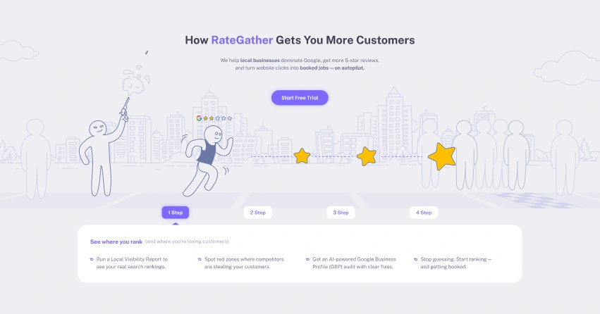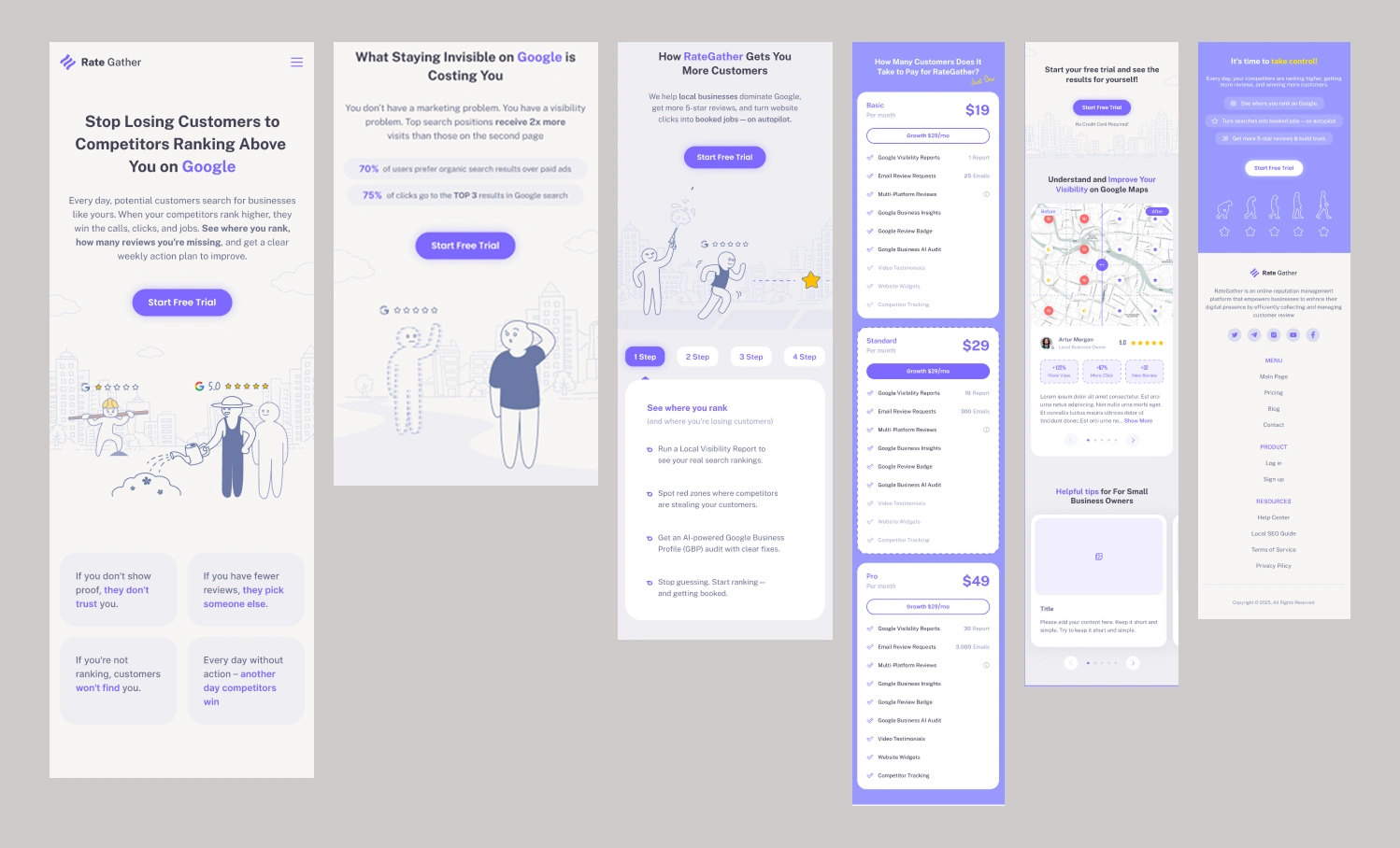 Landing page design project for RateGather - an online reputation management platform that empowers businesses to enhnce their digital presence by efficiently collecting and managing customer review