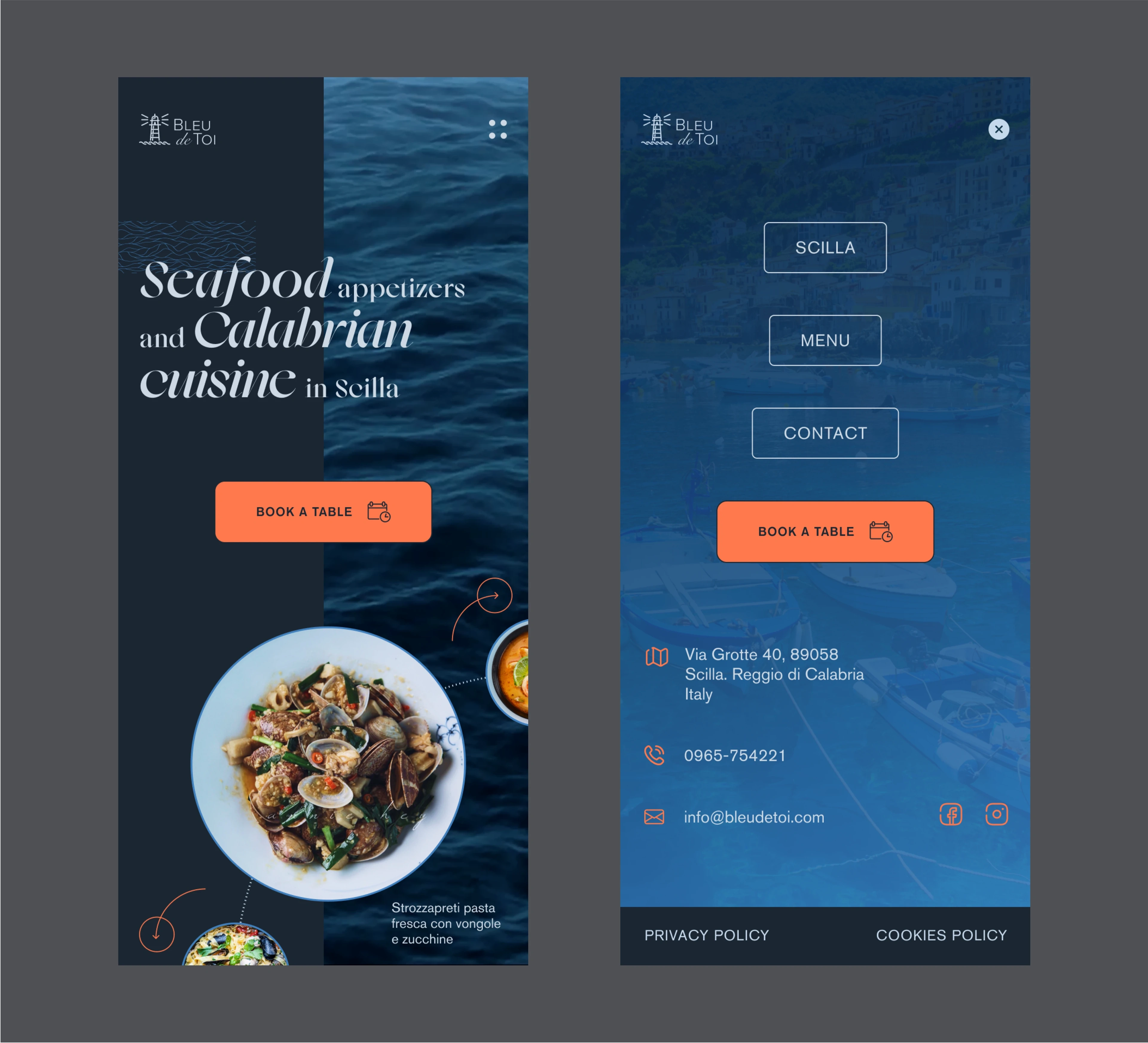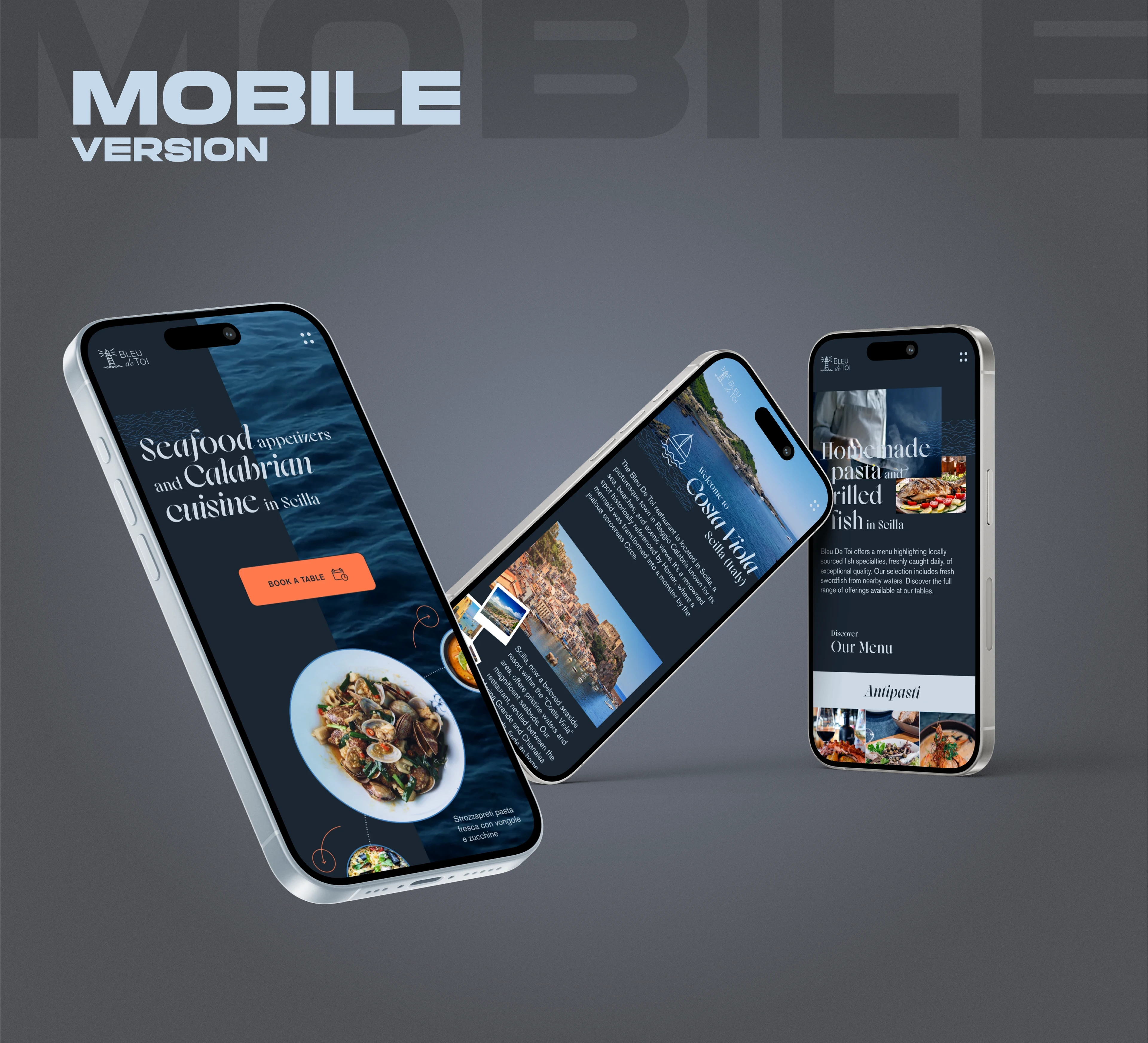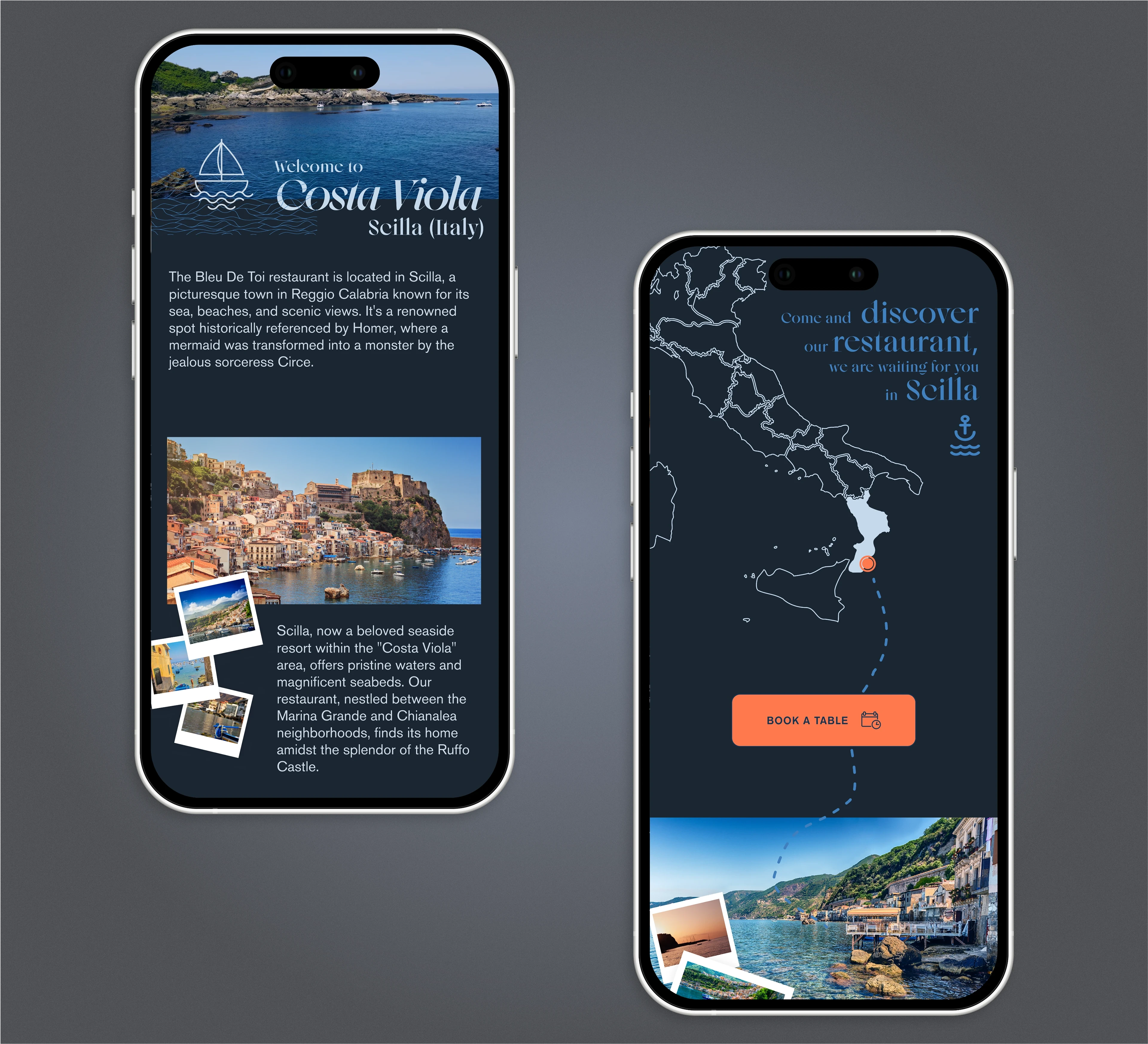 This project presents a concept website for Bleu de Toi, a refined Italian restaurant imagined with warmth, character, and Mediterranean charm. The design blends rustic elegance with modern web aesthetics — using rich visuals, inviting typography, and well-balanced layouts to reflect the cozy ambiance of an authentic trattoria. Through curated imagery, attention to detail, and a beautifully structured presentation of menu, atmosphere, and story, the site aims to immerse visitors in the flavors, aromas, and hospitality of traditional Italian dining — all before they step foot inside.