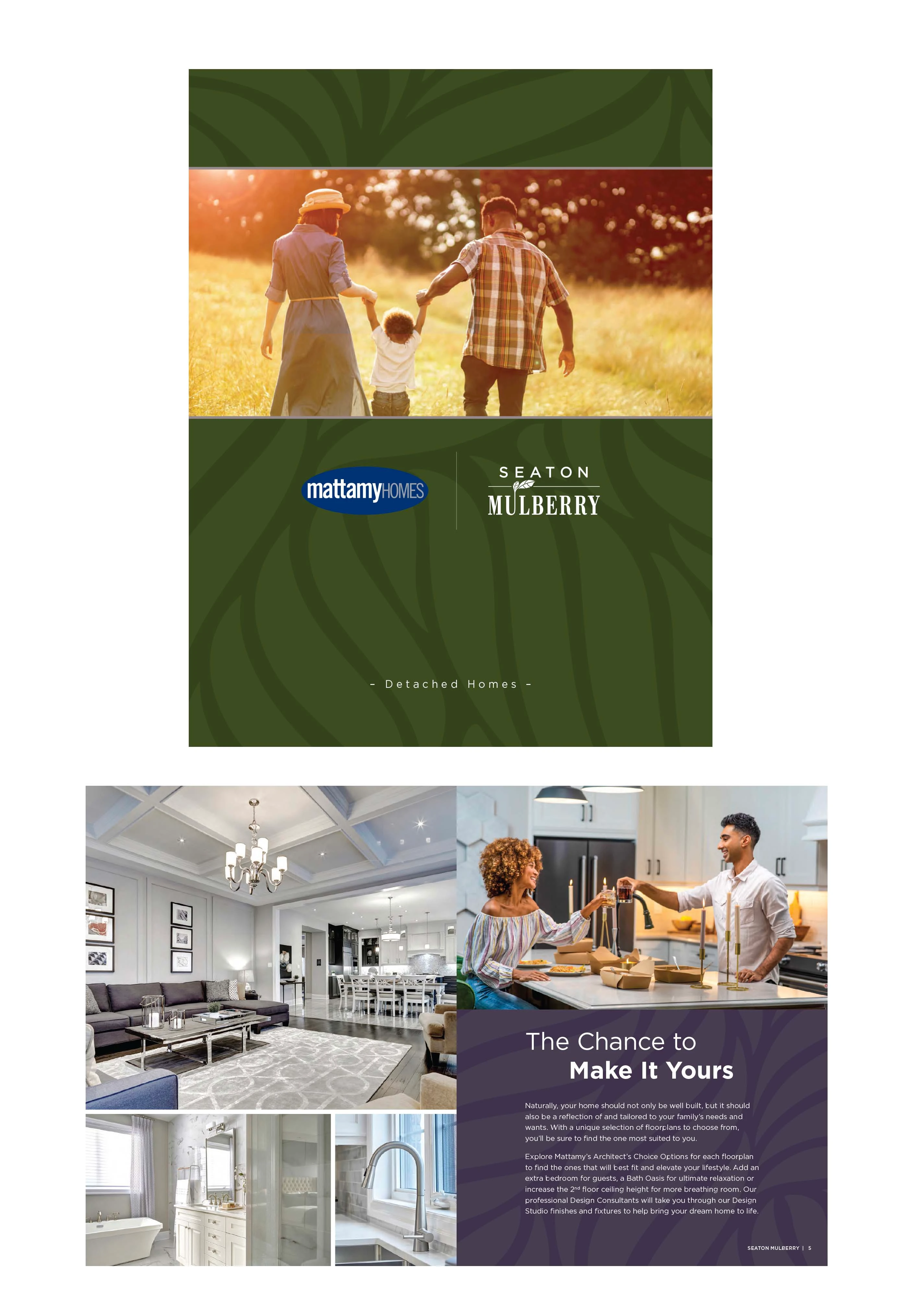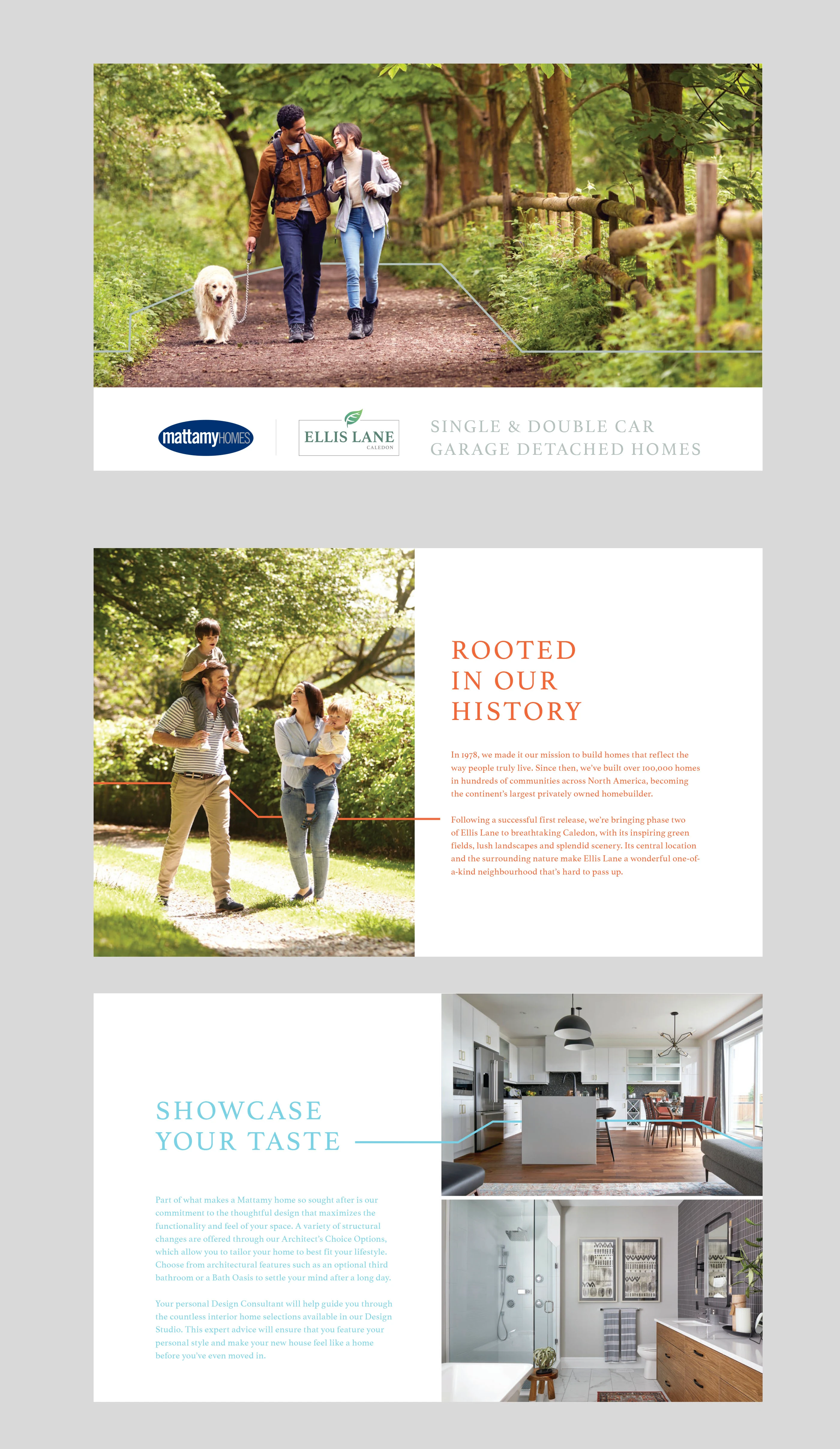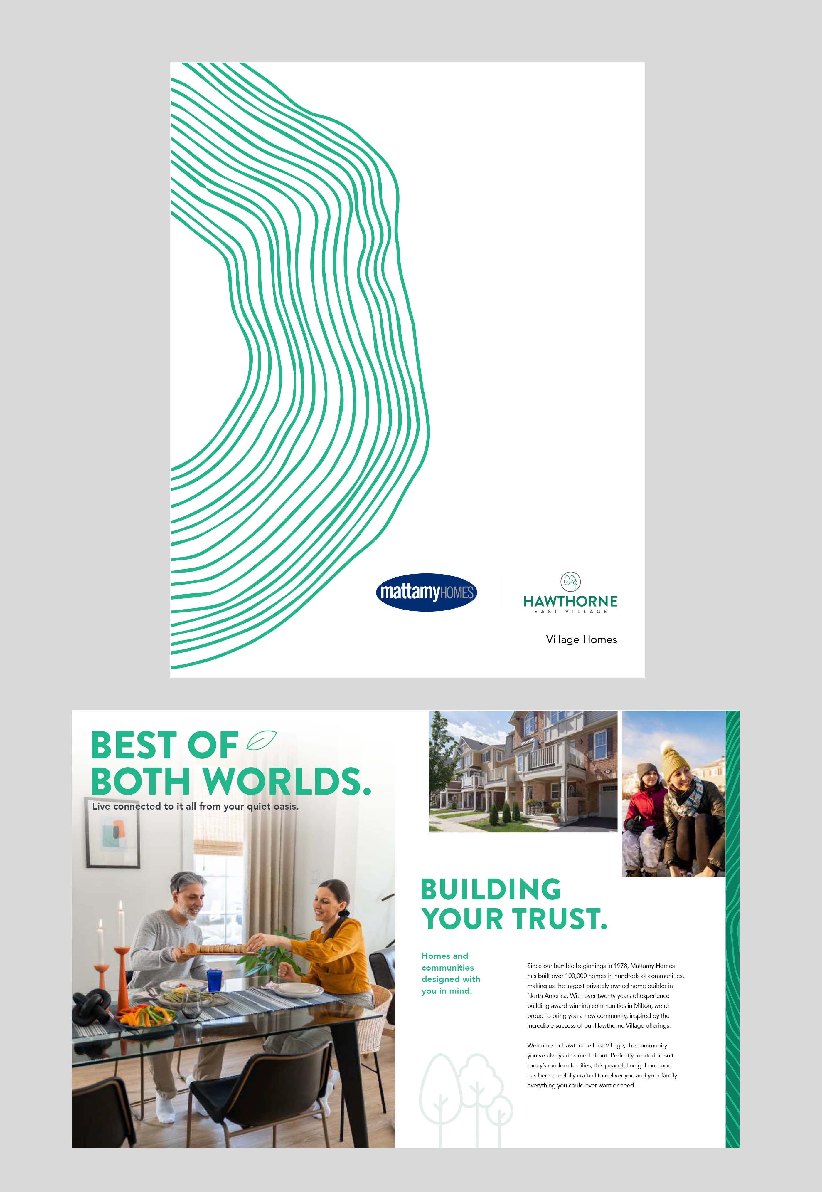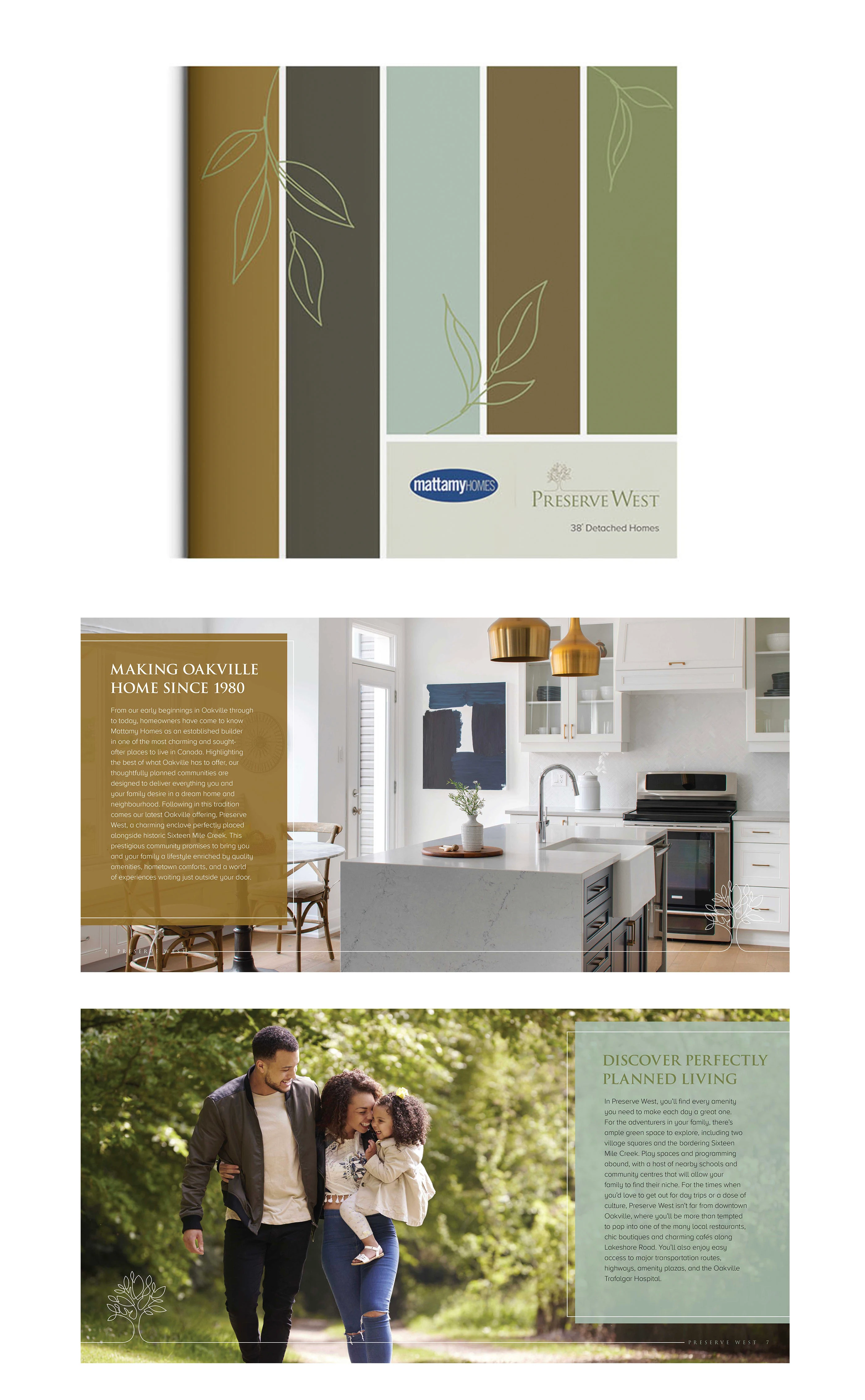 Art Director & Lead Designer for the various new community brochure launches by Mattamy Homes Canada. The branding created for each community launch was then applied to all subsequent collateral material such as Brochure, Informational sheets, video, on-site signage and online media advertising.