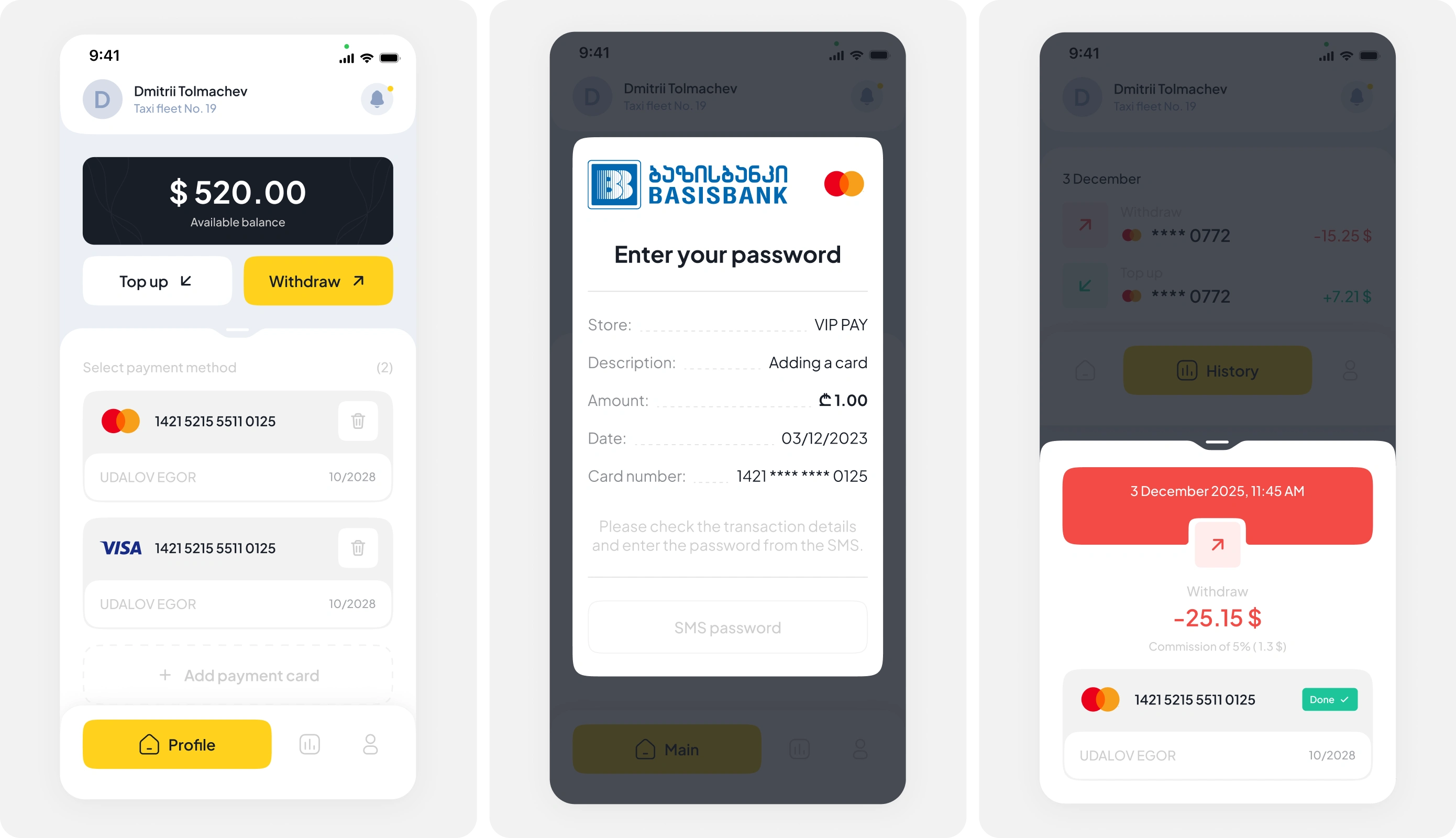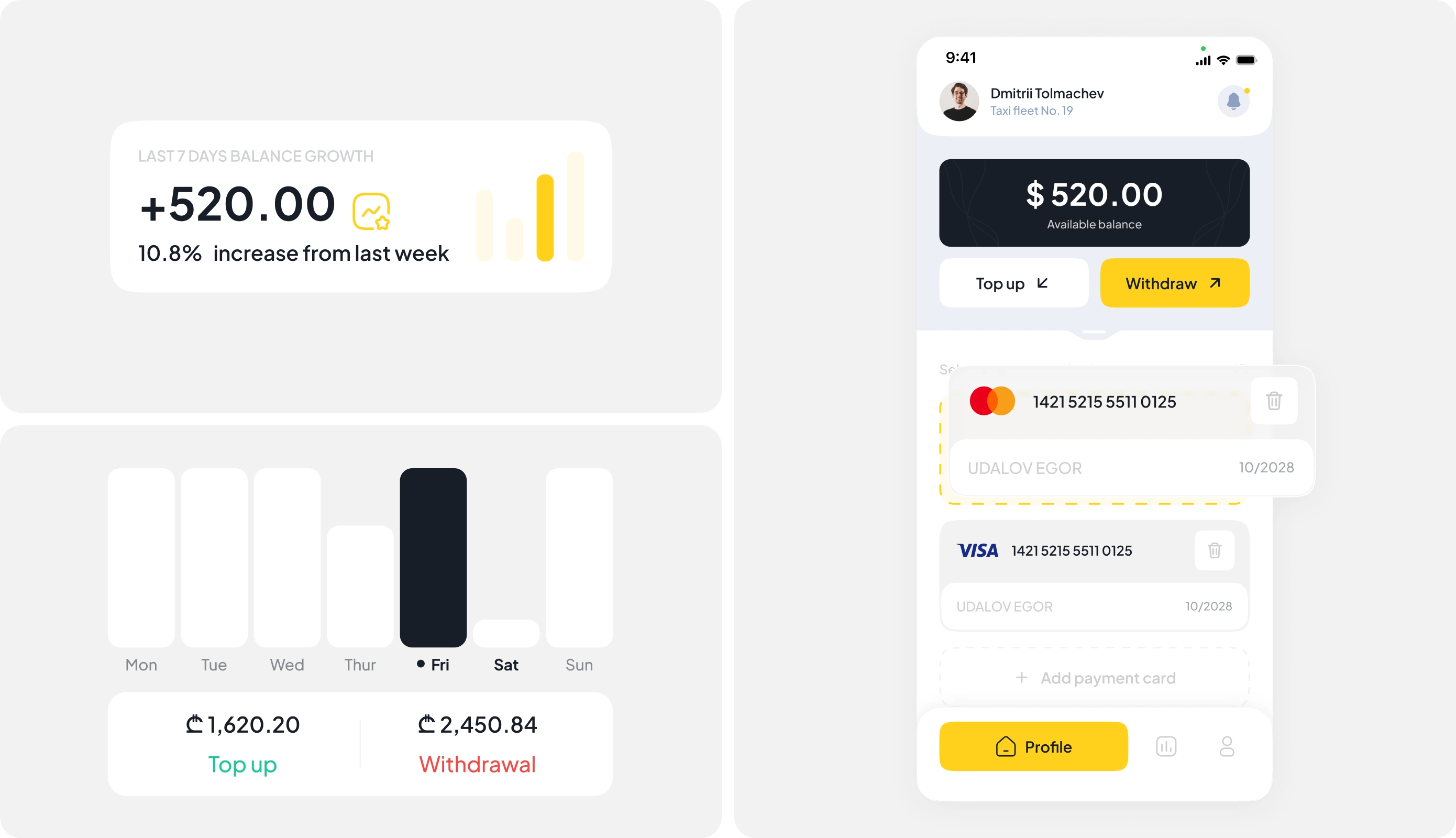 A fintech platform for taxi drivers to track earnings, manage payouts, and use a virtual card — all in one secure and user-friendly app