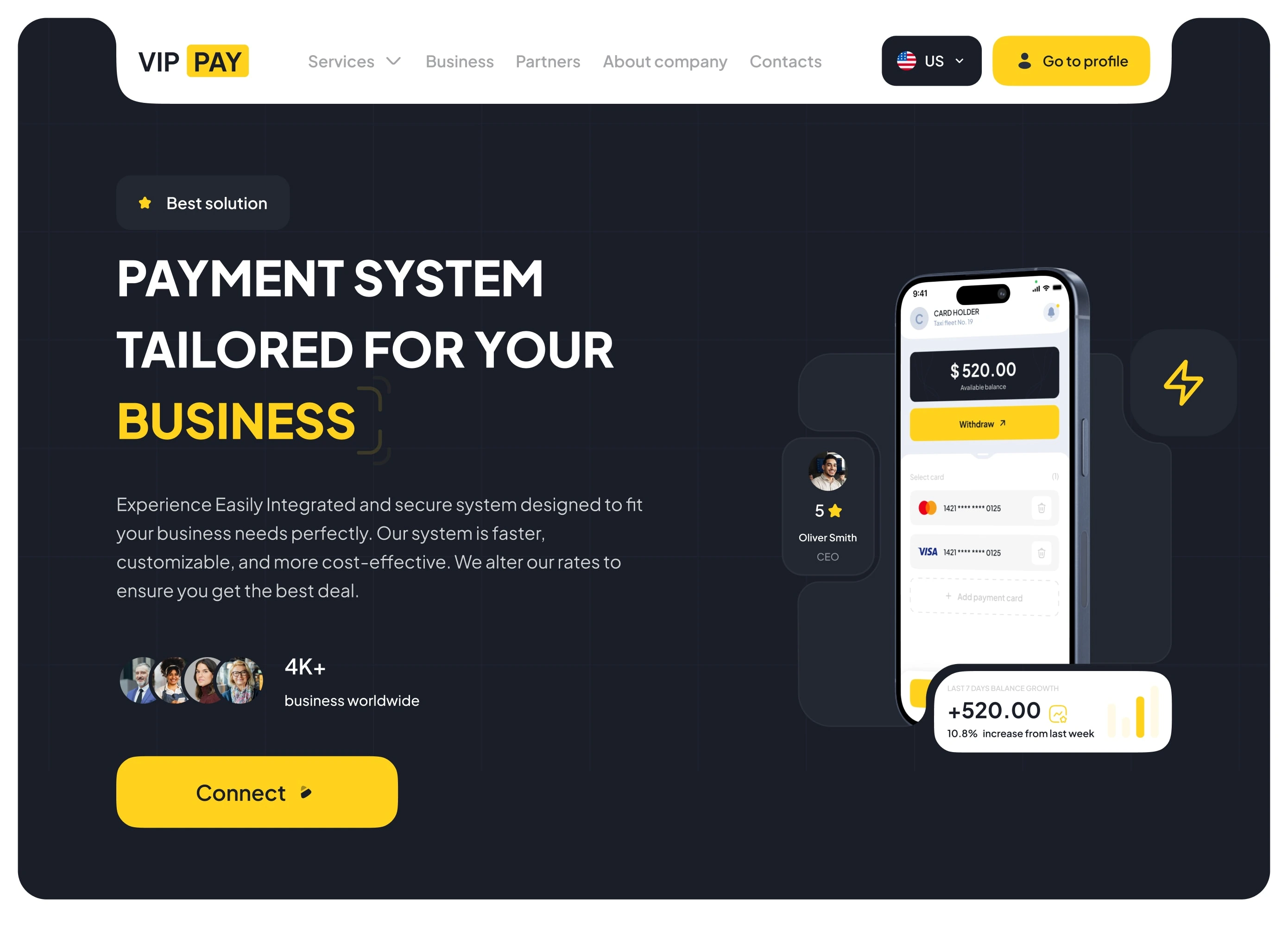 Created a modern, conversion-focused website to attract clients and connect them to the payment system quickly and securely