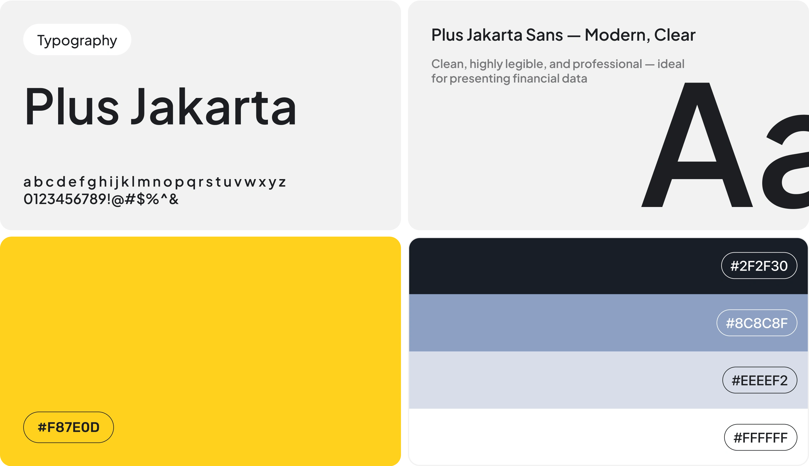 Used Plus Jakarta Sans for its clean, modern, and highly legible style — ideal for displaying financial data