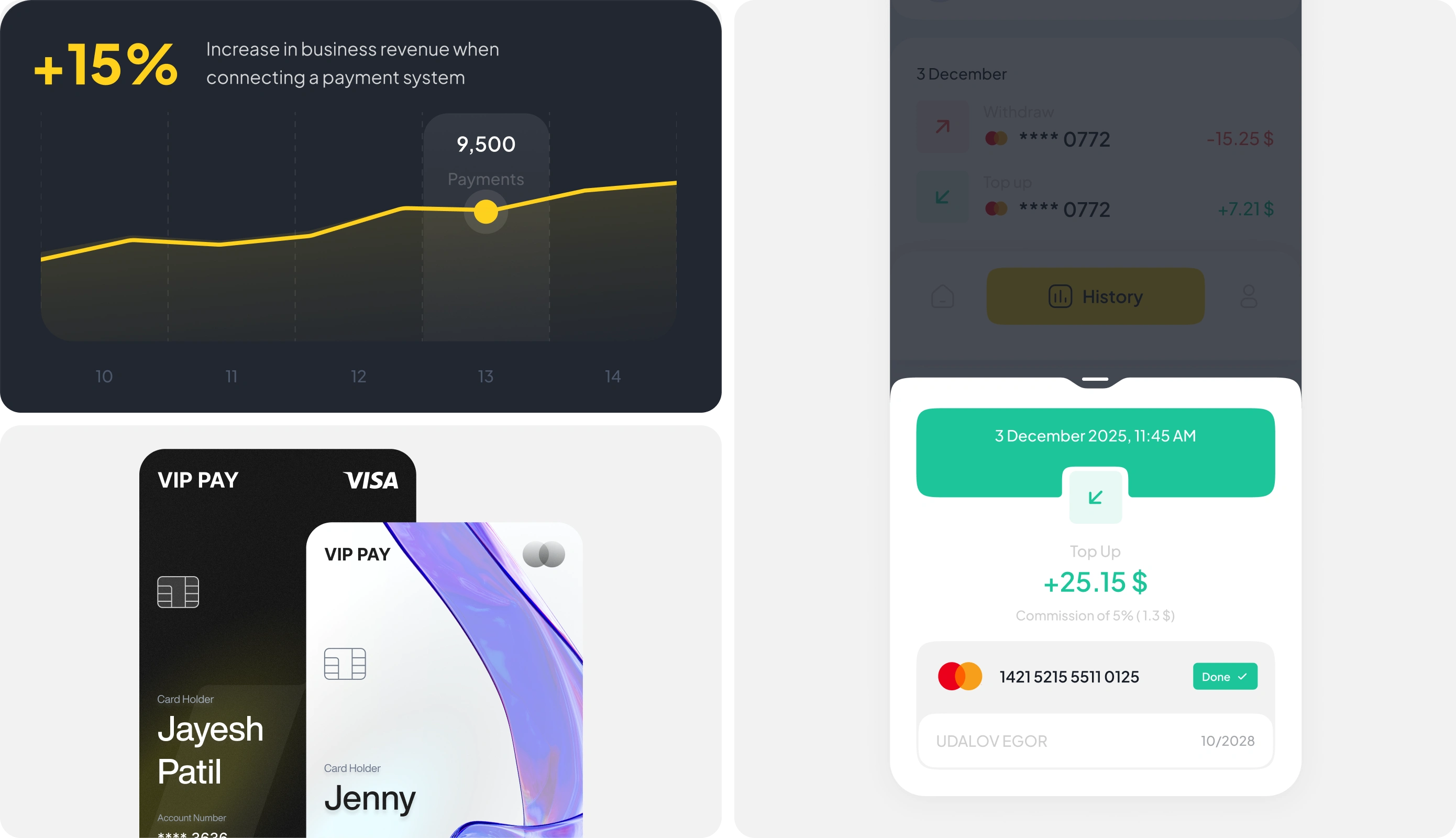 Implemented a seamless system for topping up the in-app virtual card, enabling instant balance increases and transparent fee display