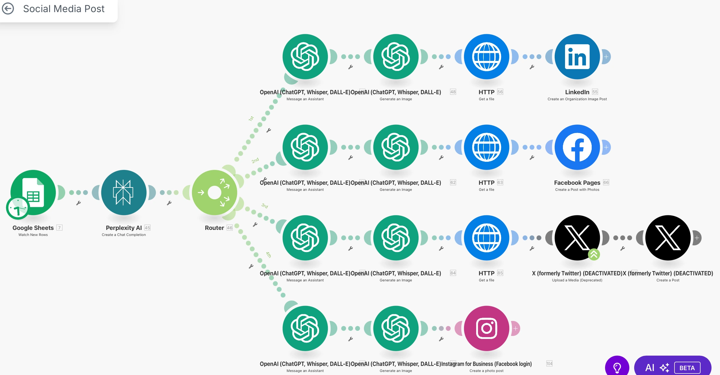 Created a fully automated social media system using AI & Make.com.This advanced social media automation can transform an idea, article, or news into highly optimized LinkedIn posts, Tweets, Facebook posts, and more. Additionally, the AI system generates platform-specific images using DALL-E 3.