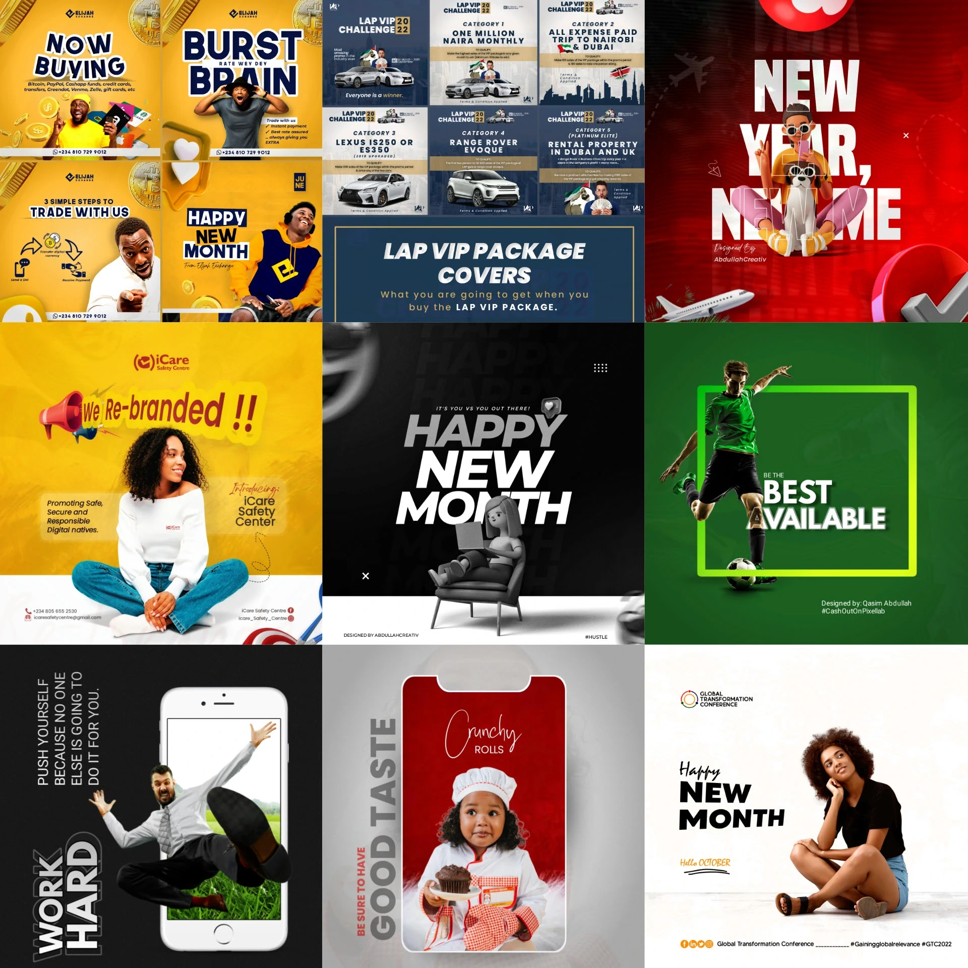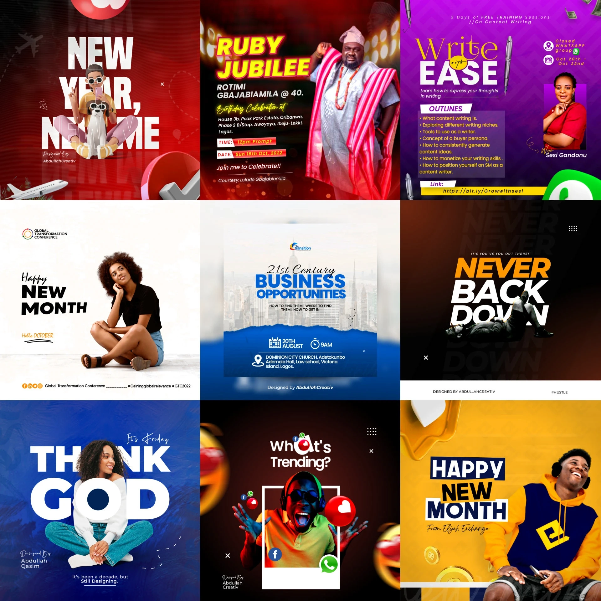 A collection of flyer and poster designs crafted to communicate messages clearly and creatively for various brands and events.