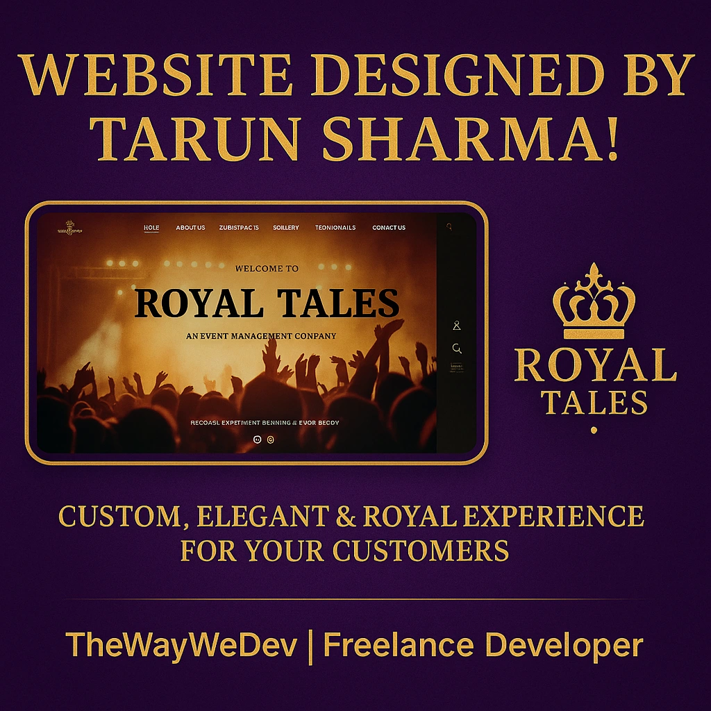 A custom, elegant, and royal website designed for Royal Tales, an event management company. The design, services and promises a premium experience for clients.