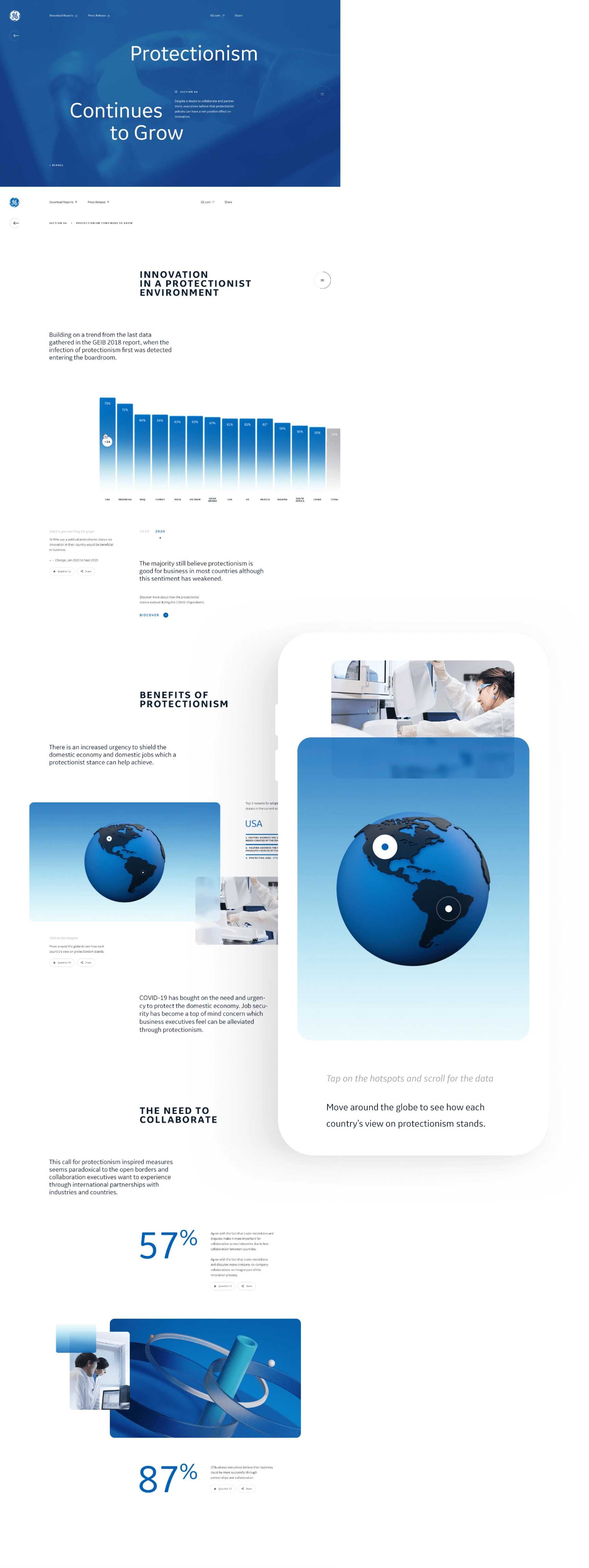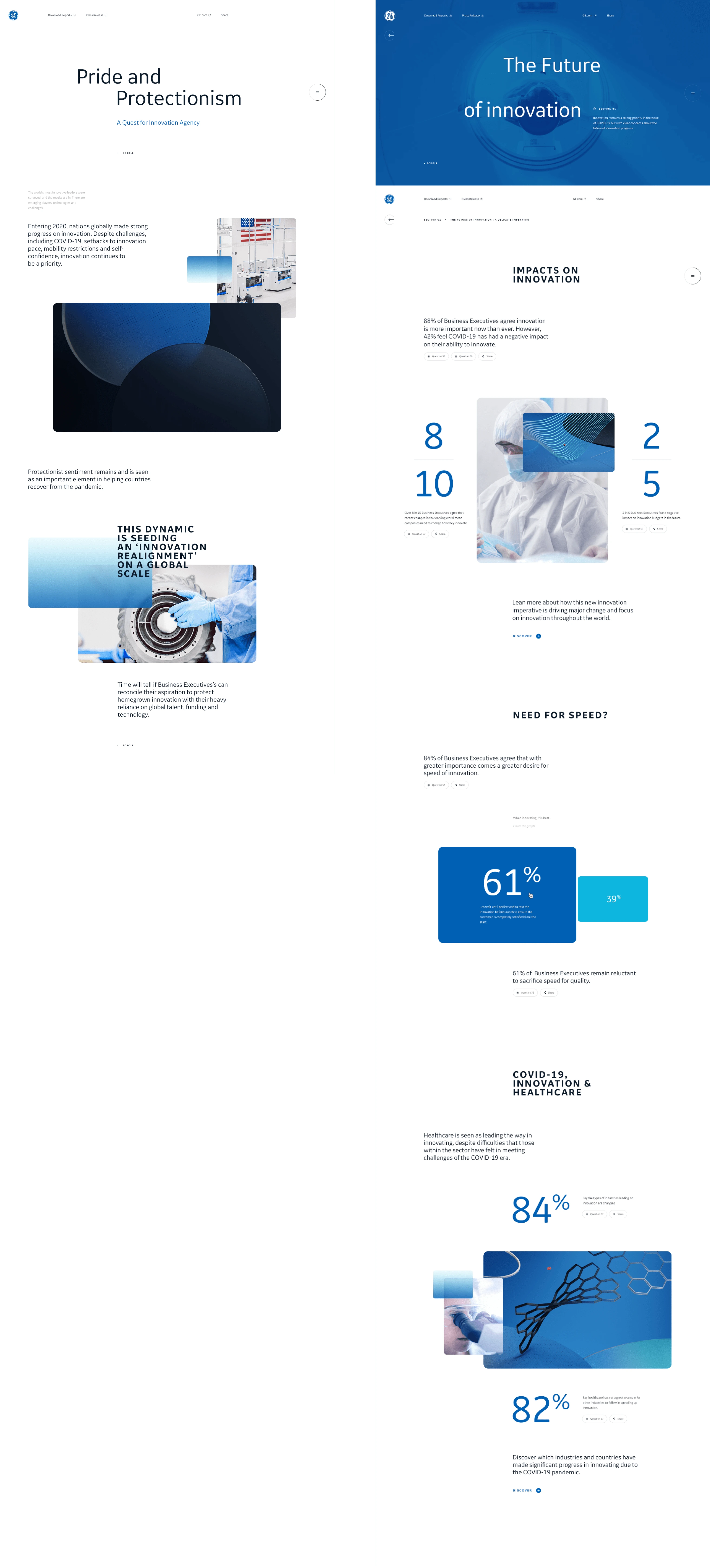 Every two years, General Electric surveys the world’s top inventive minds about the future of innovation. The GIB20 website takes this extensive, 50-page report, filled with complex and abstract data, and transforms it into engaging, user-friendly experiences. The site achieves this through meaningful interactions, videos, 3D illustrations, and WebGL elements.