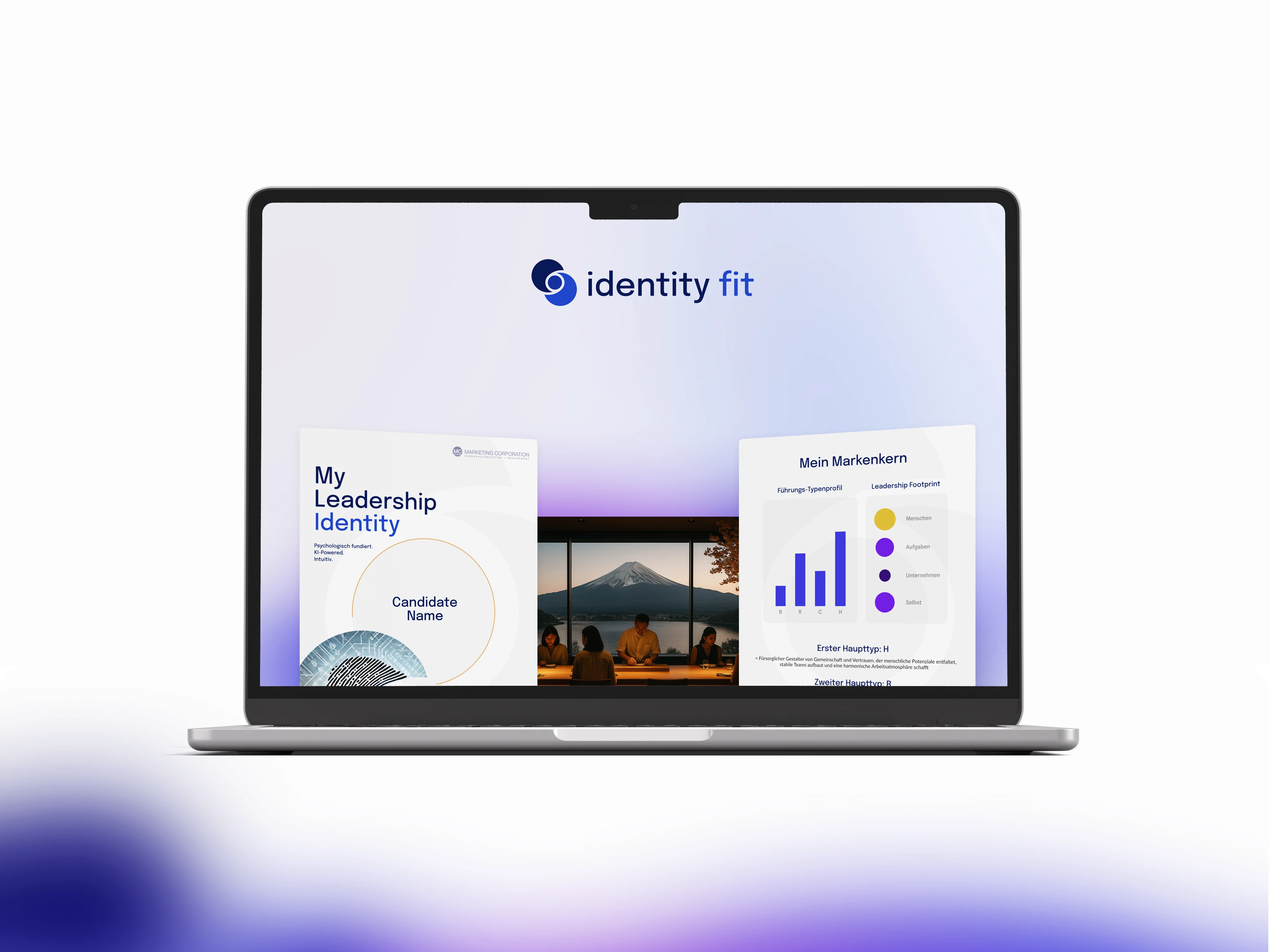 Identity Fit is an AI-driven HR tool for leadership profiling. The project's aim was to translate a complex psychological model into clear, trustworthy brand- and webdesign. That's why the final design focuses both on clarity and modernism. Conveying both the reliability of the tool and the fun one has using it governed the decision-making for layouts, color choices and typography.