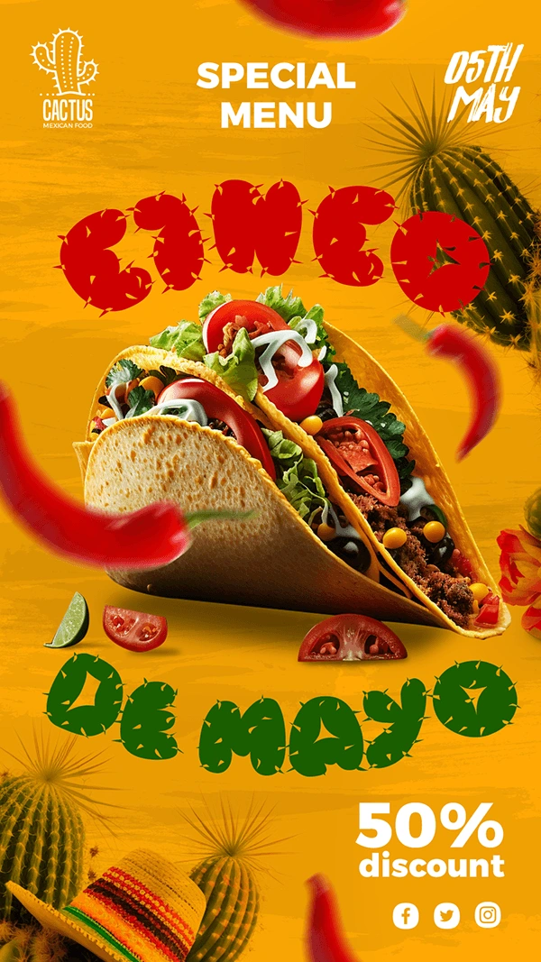 We had a blast designing this vibrant Cinco de Mayo campaign for Cactus Mexican Food! 🌮🌵