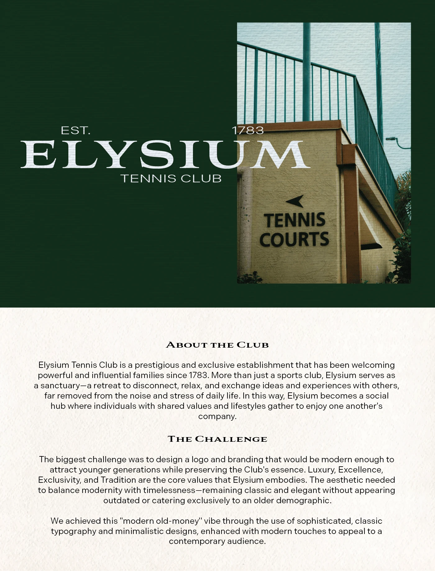 Elysium’s brand identity. Old money, minimalism and elegance once again come together to create a classic (but modern) brand.
