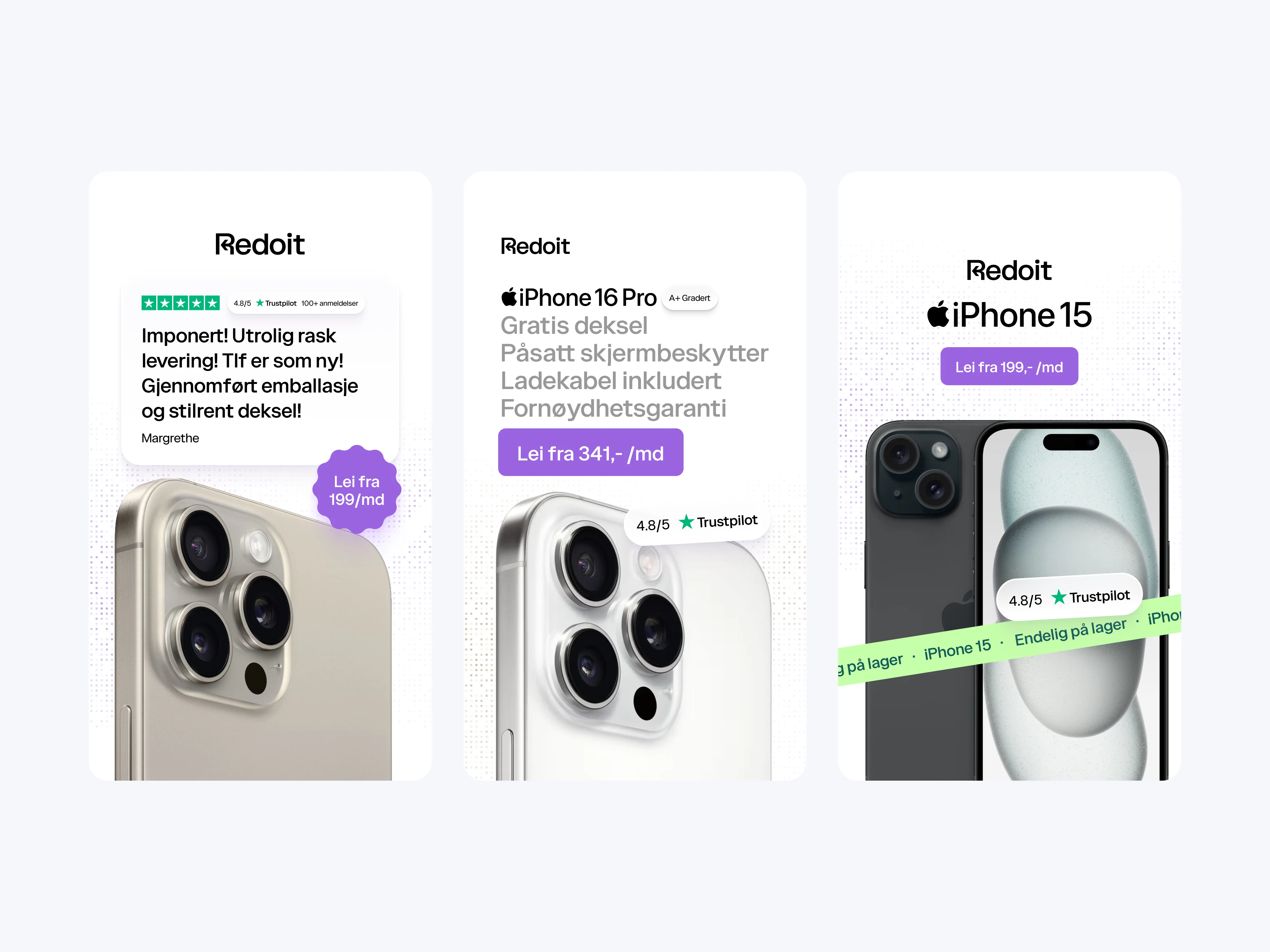 Redoit is flipping the script on phone ownership in Norway, offering iPhone leasing that's better for your wallet and the planet. They needed ad creatives that could cut through the noise of social feeds and communicate their value proposition in a split second.