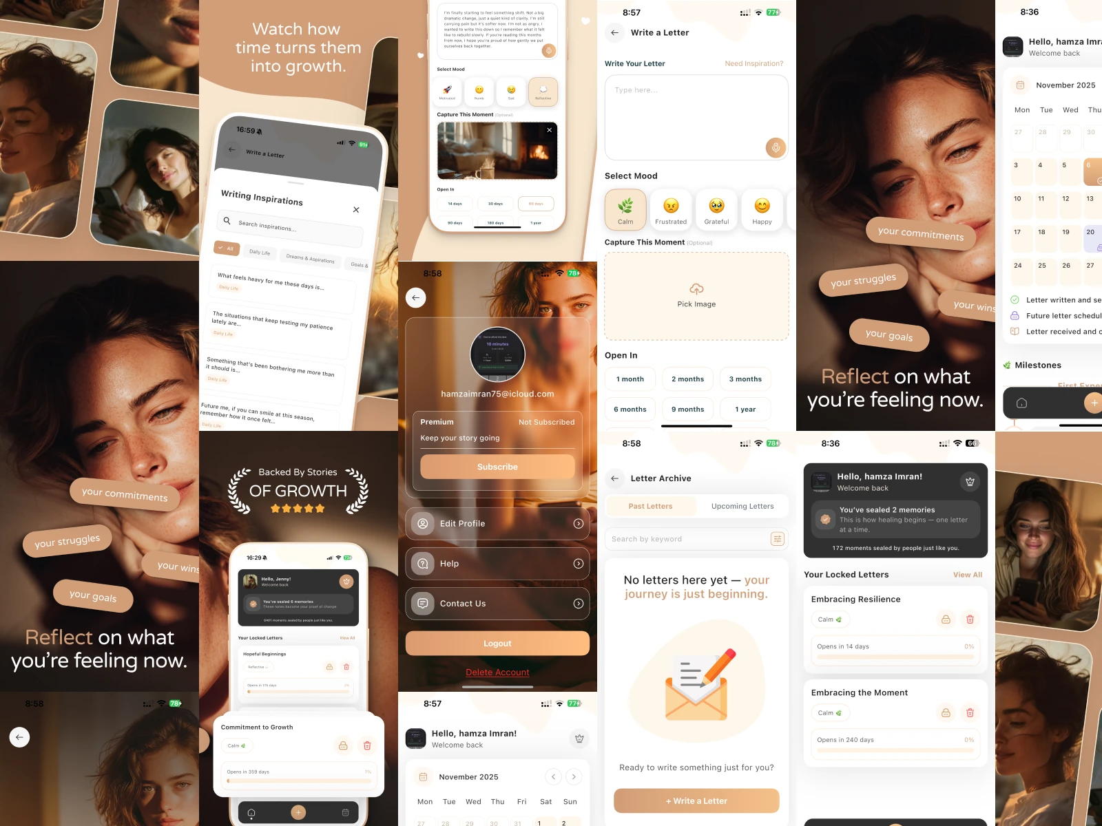 FutureNote is an intimate digital time capsule that enables users to write heartfelt messages to their future selves. The app transforms personal reflection into a meaningful journey of growth, allowing users to capture their current struggles, hopes, and memories, then seal them away to be discovered months or years later. When these letters unlock, users gain a powerful perspective on how far they've come and what they've overcome.