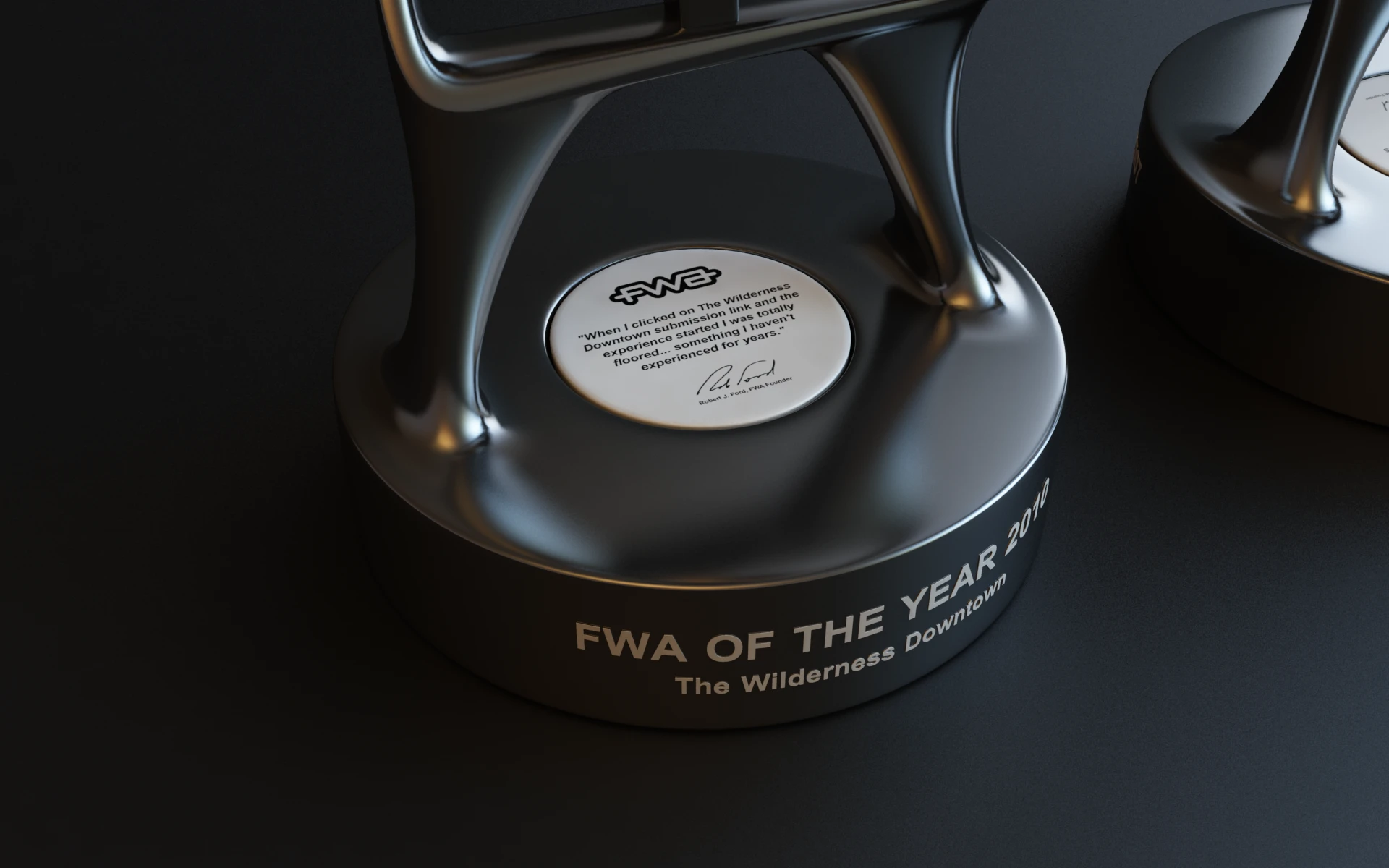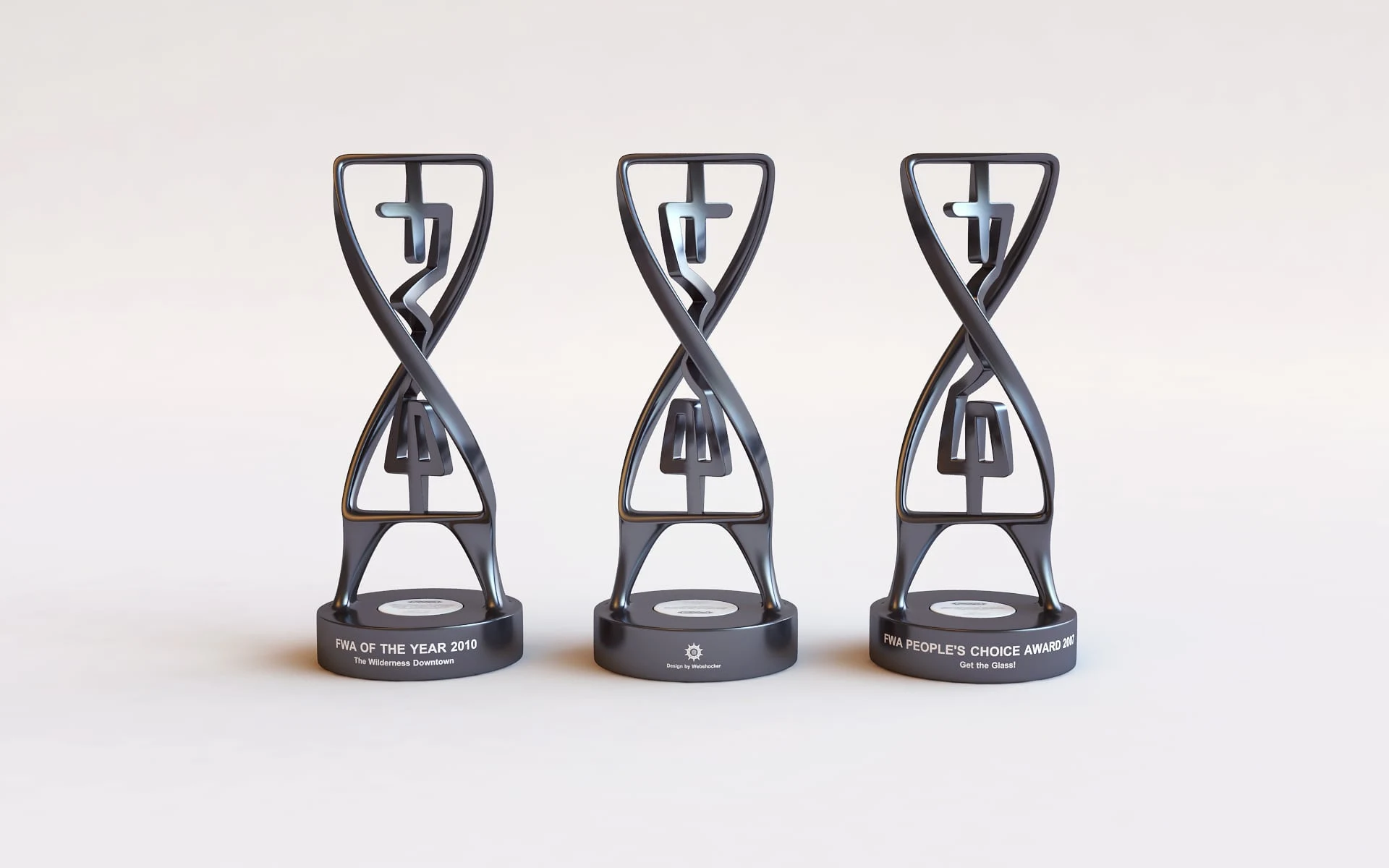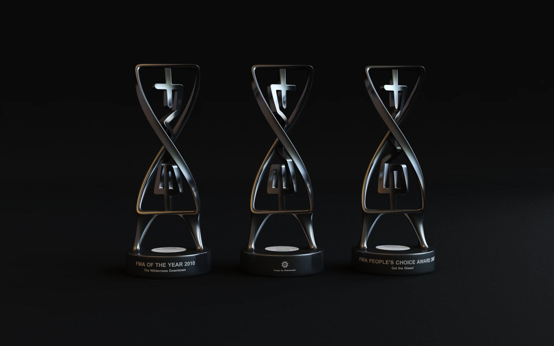 FWA. I had the privilege of designing the official FWA award trophy. My goal was to create something truly unique, incorporating their iconic logo into the design. The concept I developed was a spinning trophy that evokes the feeling of a DNA strand—symbolizing creativity, innovation, and evolution in digital design.