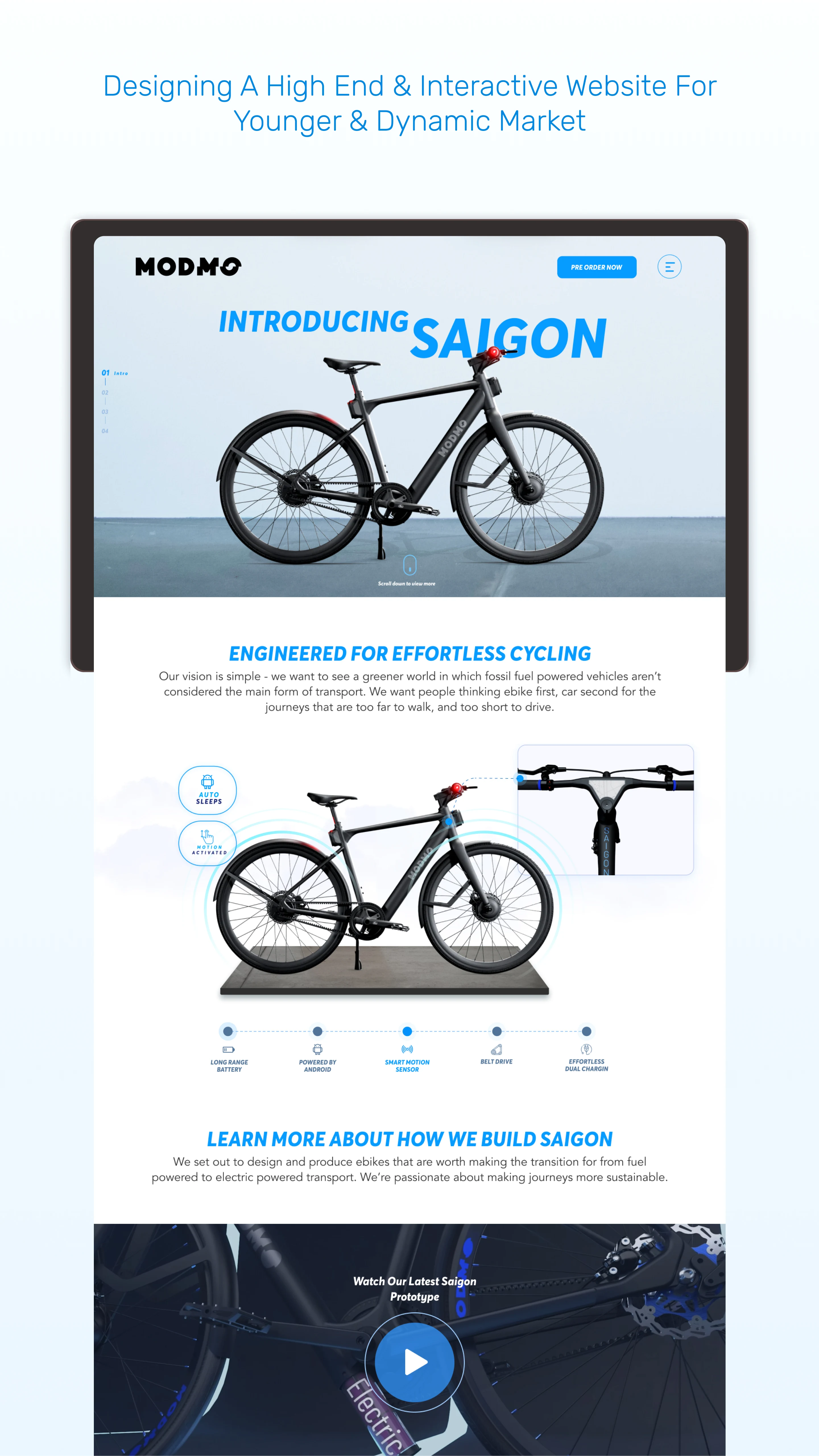 Modmo an urban electric bike needed a fresh landing page or website to launch the product. The website had to be responsive as the early buyers user mobile.