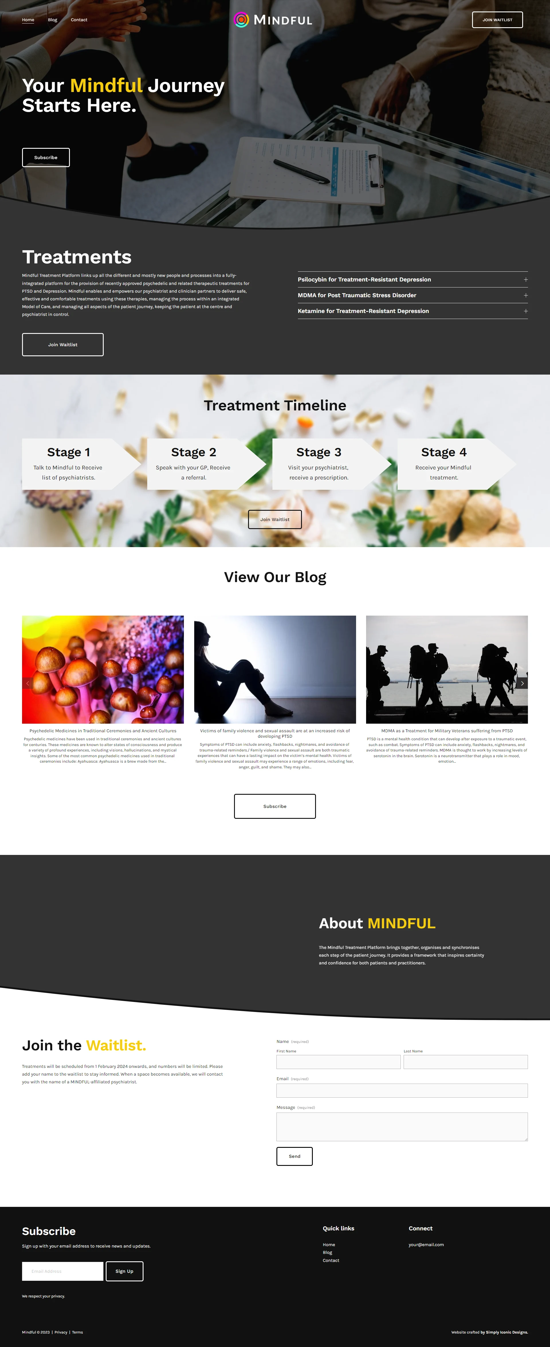 Working with a client who needed a simple landing page/ home page for a new psychadelic clinic. Was a interesting project using some custom code.