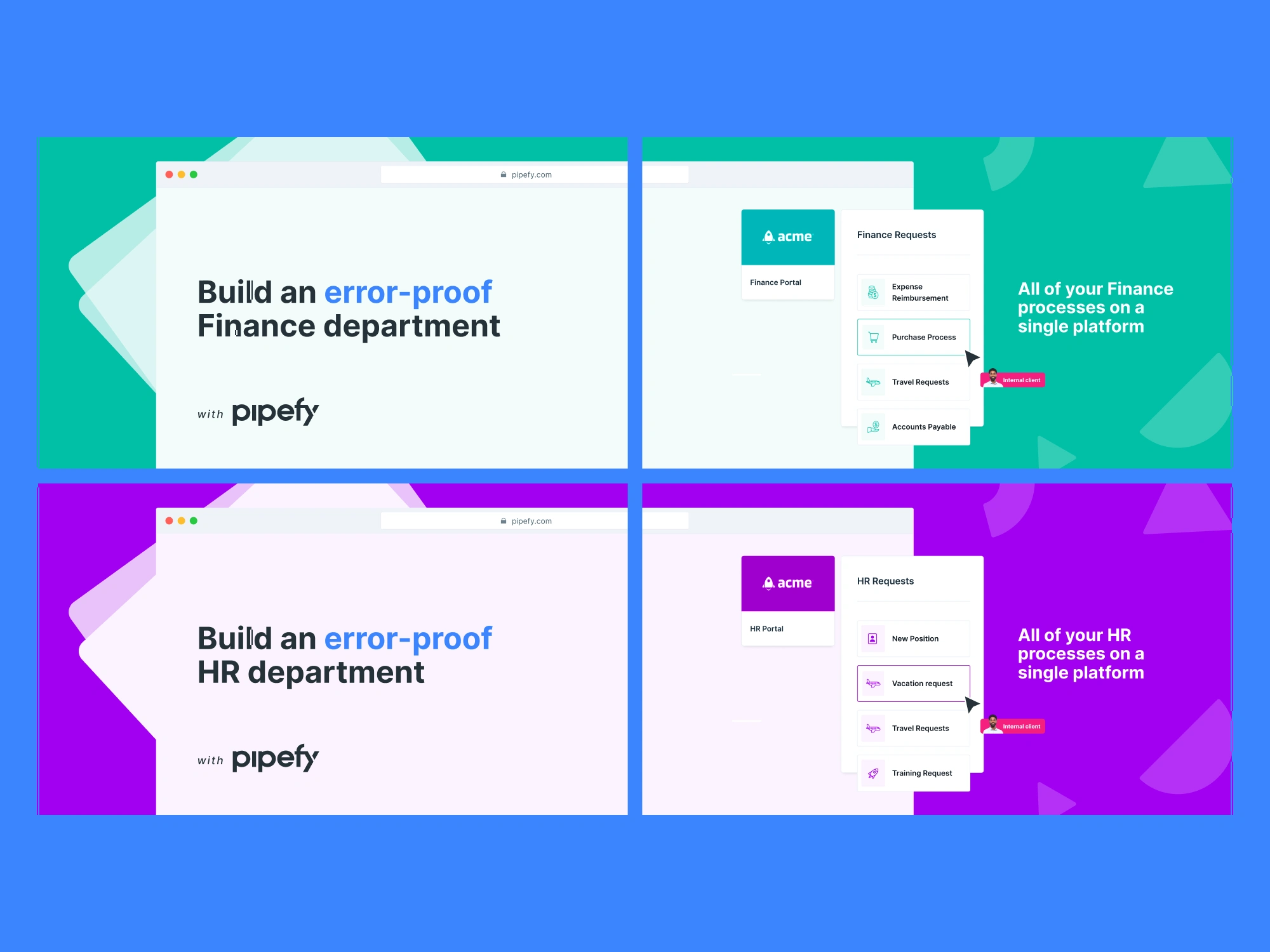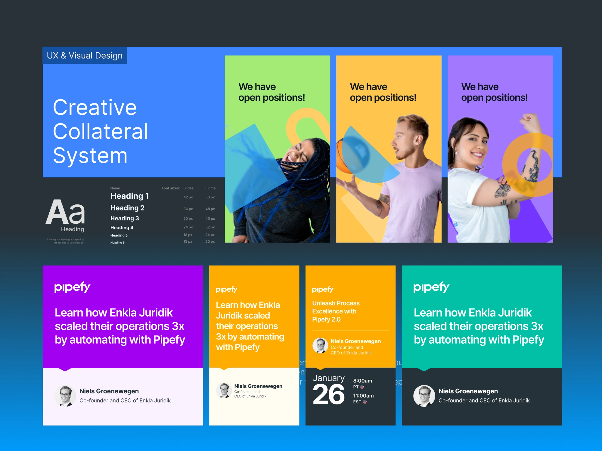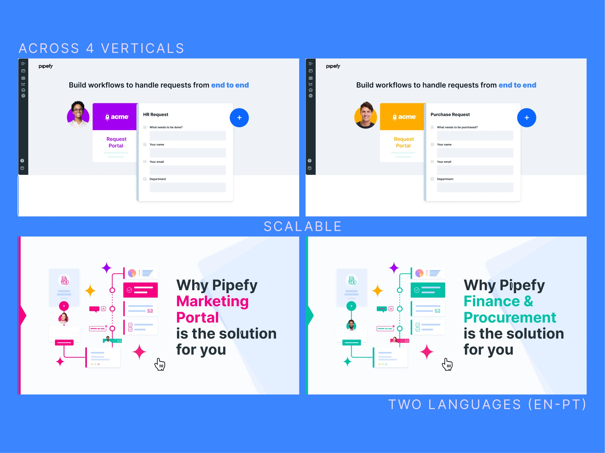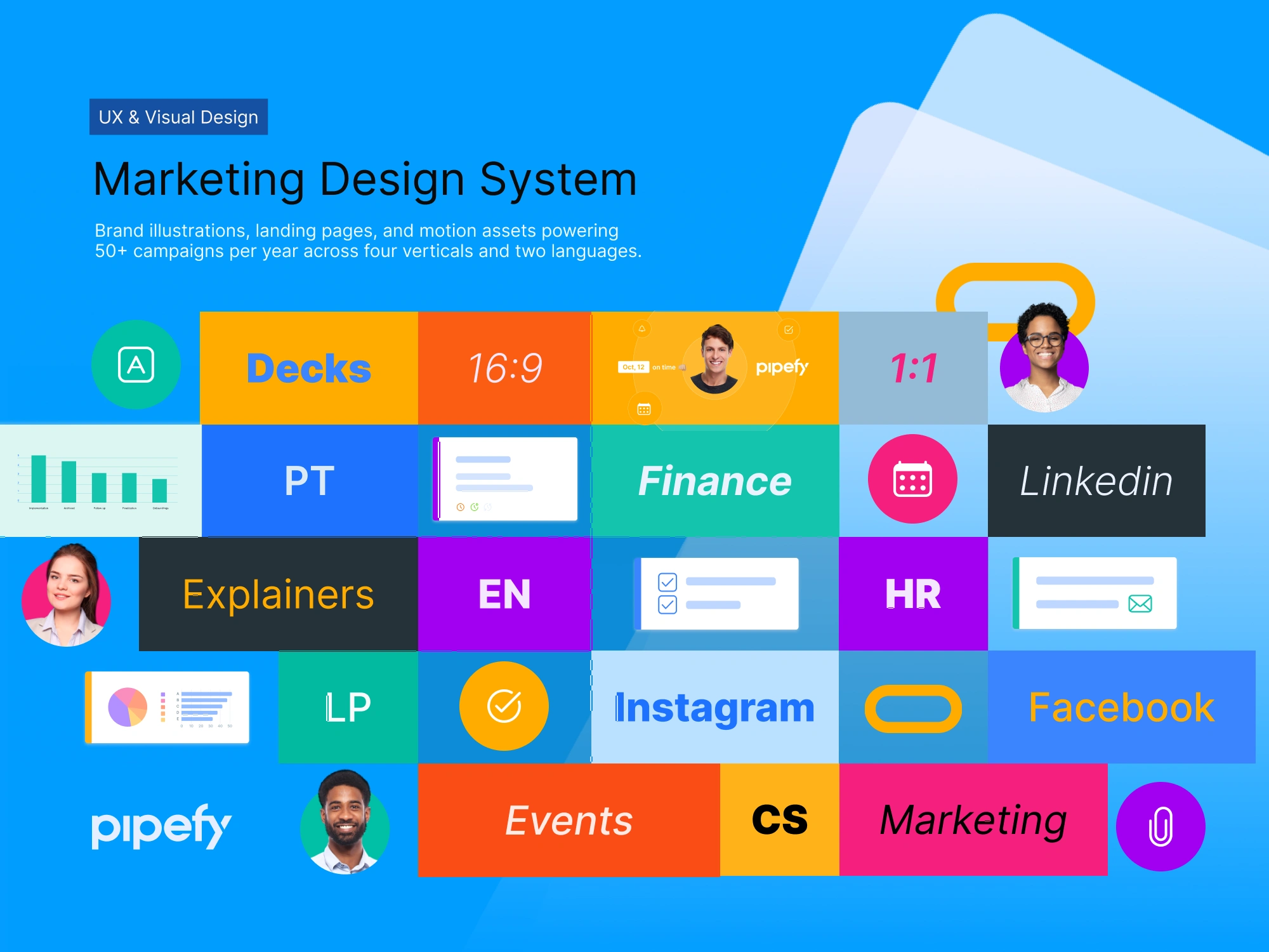 Pipefy is a low code workflow automation platform serving enterprise customers across strategic verticals. In 2020, they set an aggressive growth goal, and for that, they needed a marketing design system that could scale globally while maintaining brand consistency over all user journey.