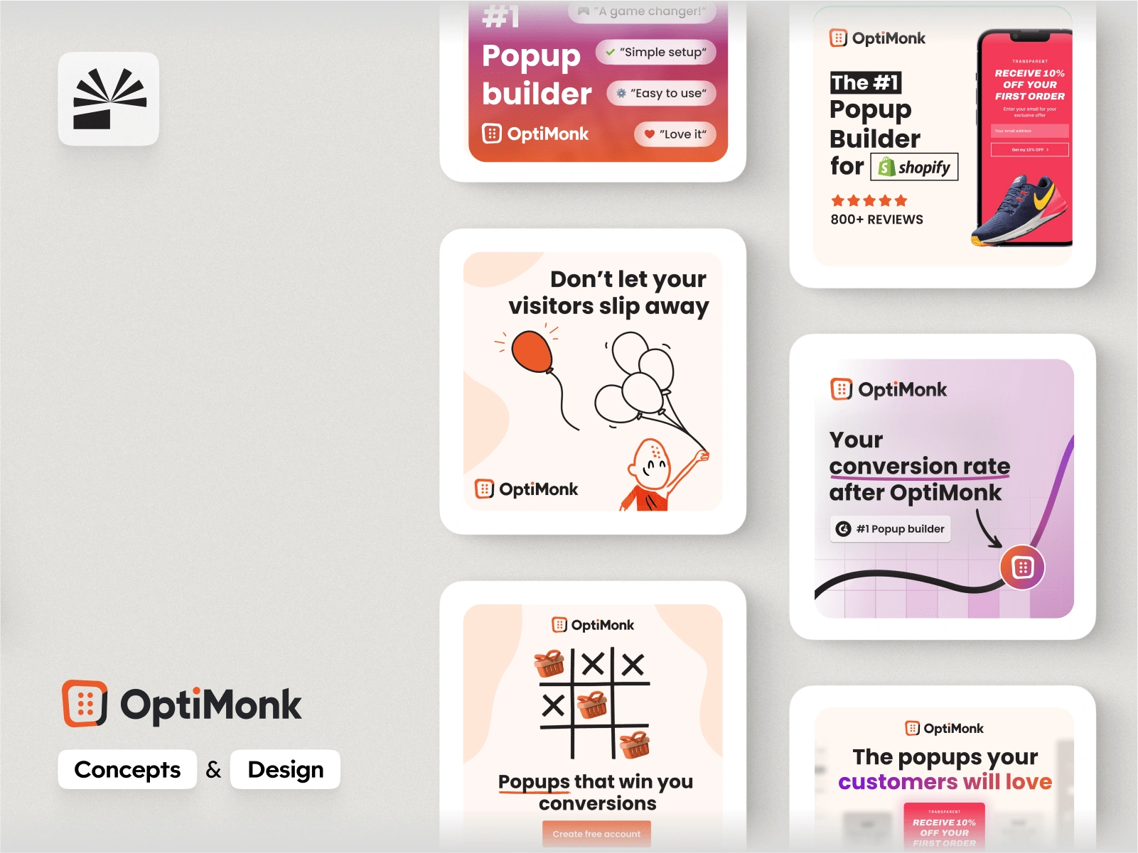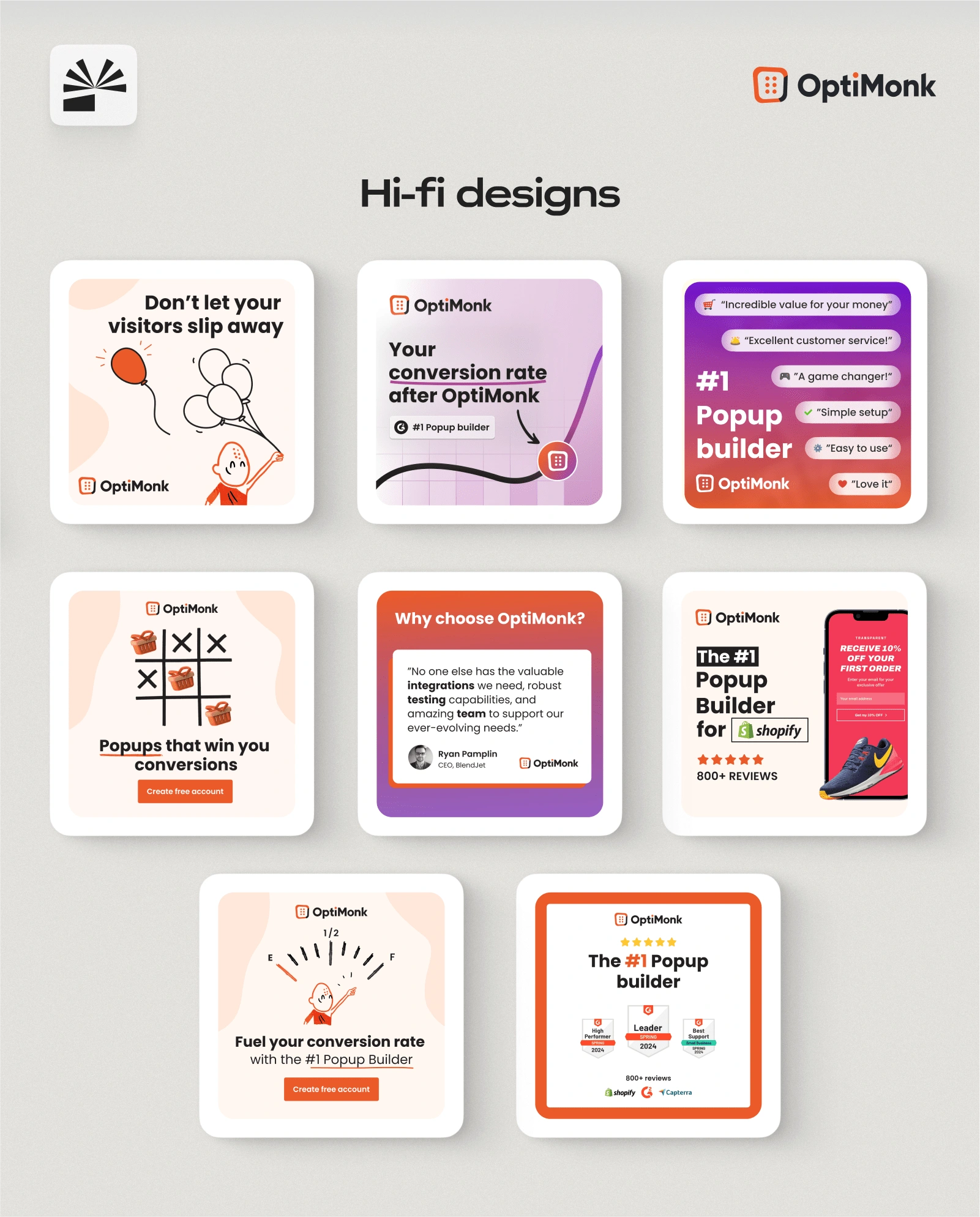 We conceptualised & designed a mix of capability & pain-point focused ads for a popup builder tool. The top performers from this batch improved CTR by 50%.