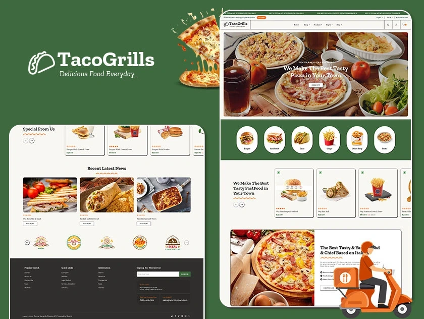 Transform your fast-food business with TacoGrills, a dynamic Shopify theme designed for burger joints, pizzerias, and quick-service restaurants. Elevate your o…