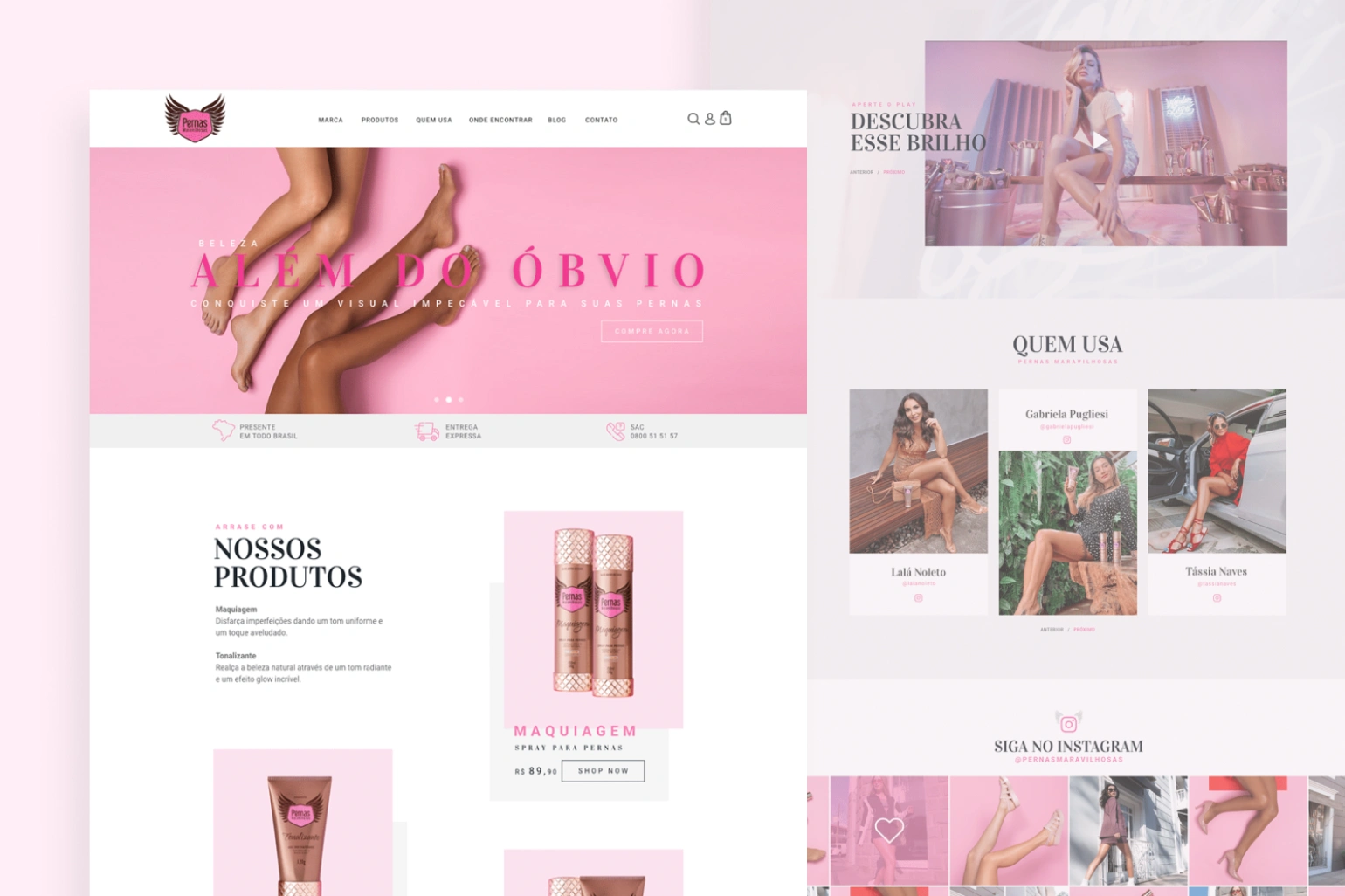 This project was a challenge because of the technical limitations we had under the e-commerce platform the client was using. The goal was to create a beautiful landing page to present the brand as a reference in makeup for legs, but also highlight the products and make it clear it was an e-commerce site. Despite the limitations, we could achieve the goals for this client and deliver a unique and recognizable design for this project.
