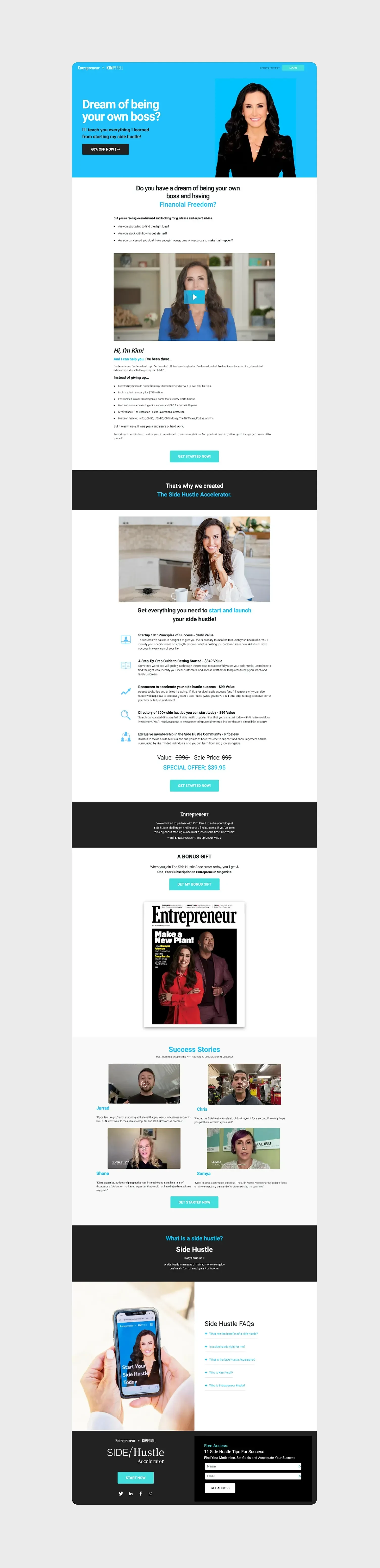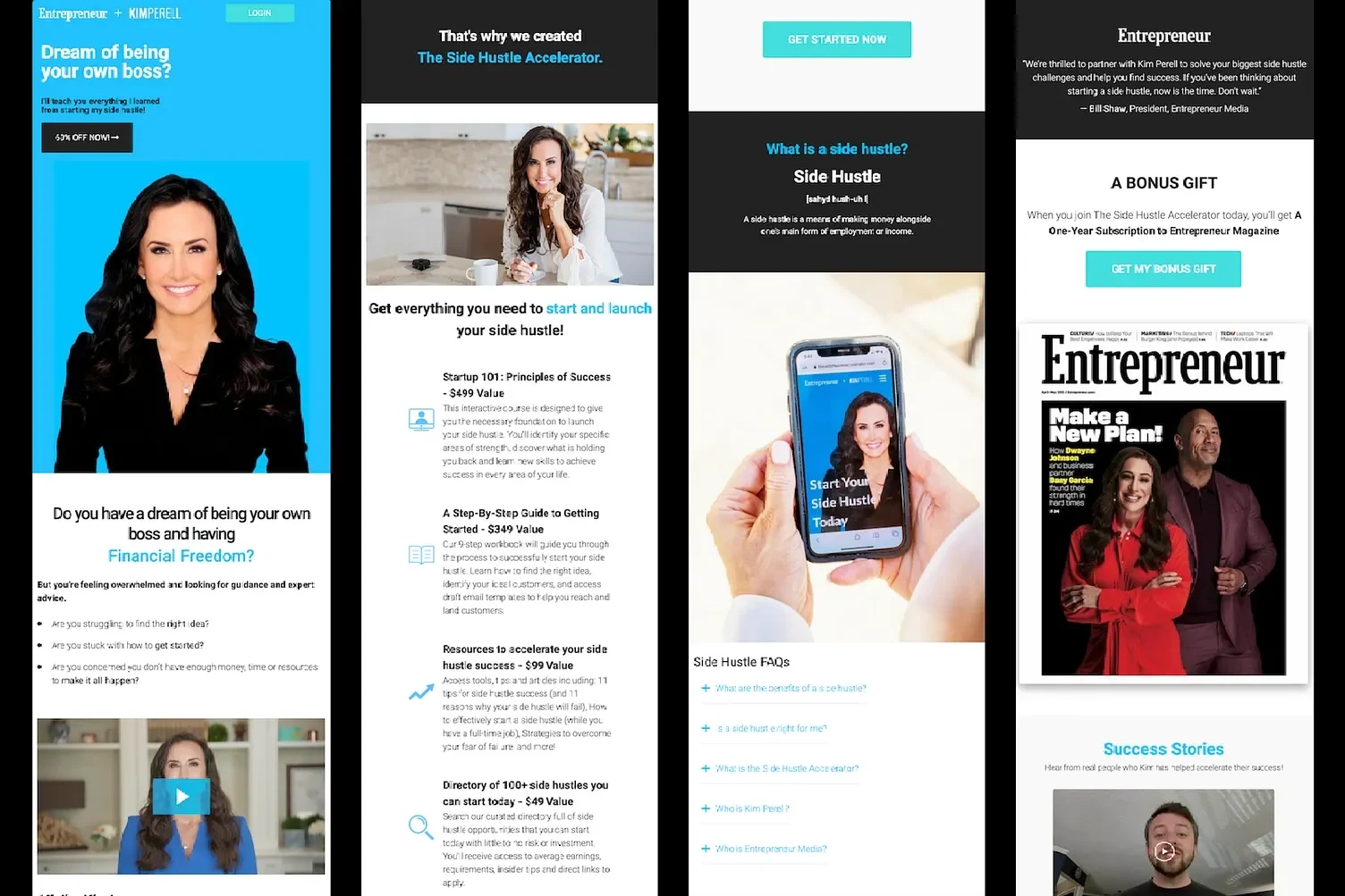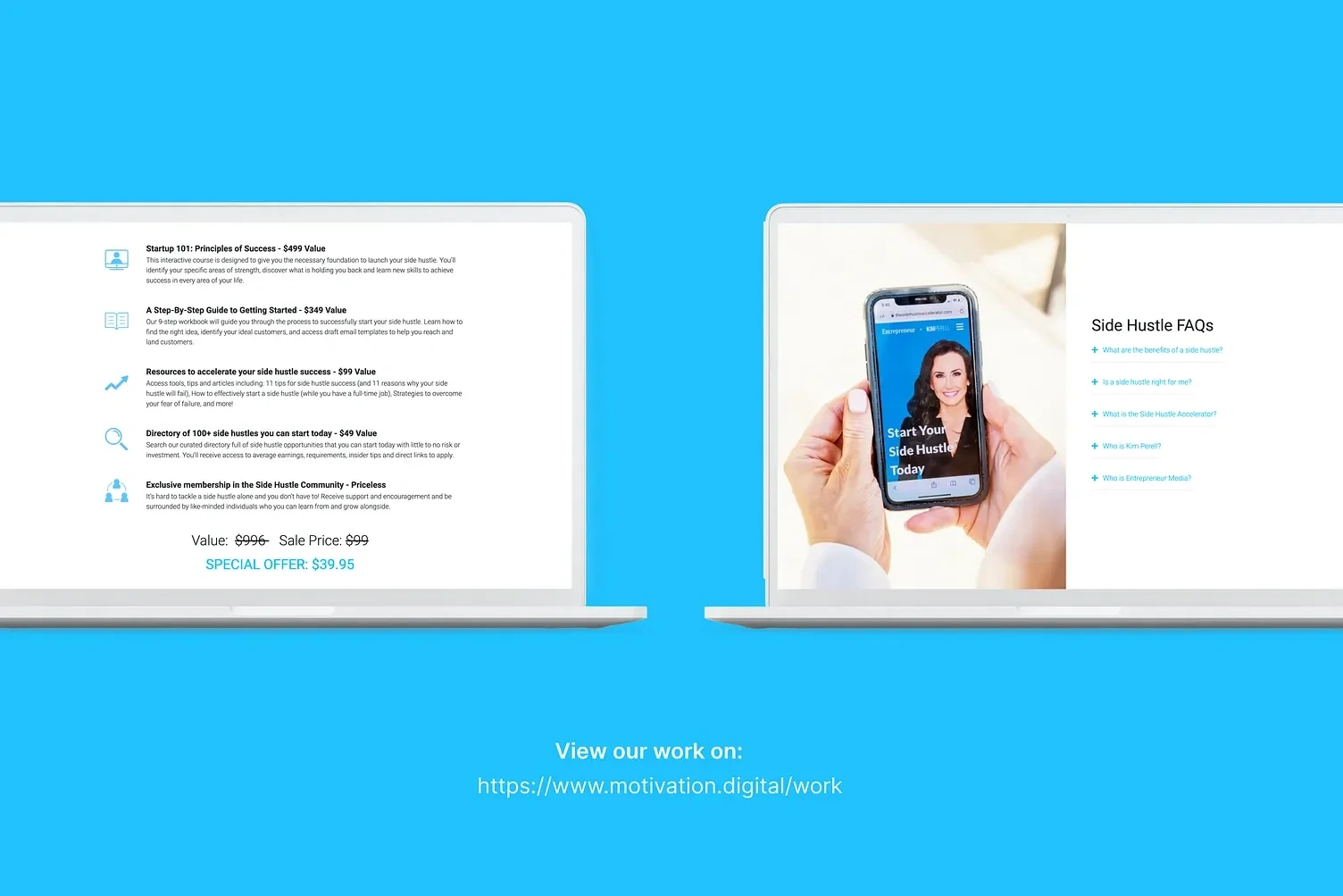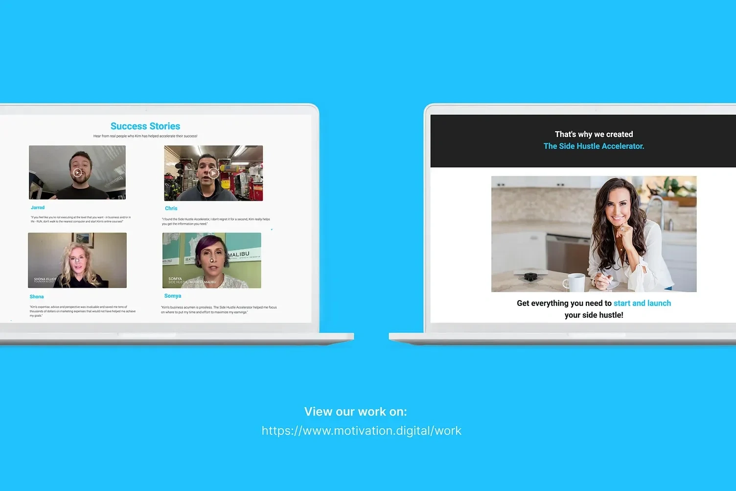 Launchpad enables us to create fluid designs for multi-device screen sizes and browser types. Something Kajabi does very badly without Launchpad. The Side Hustle Accelerator website was created fully mobile, tablet, laptop, desktop and large screen optimised and loads faster using Launchpad Rocket for a better search engine experience.