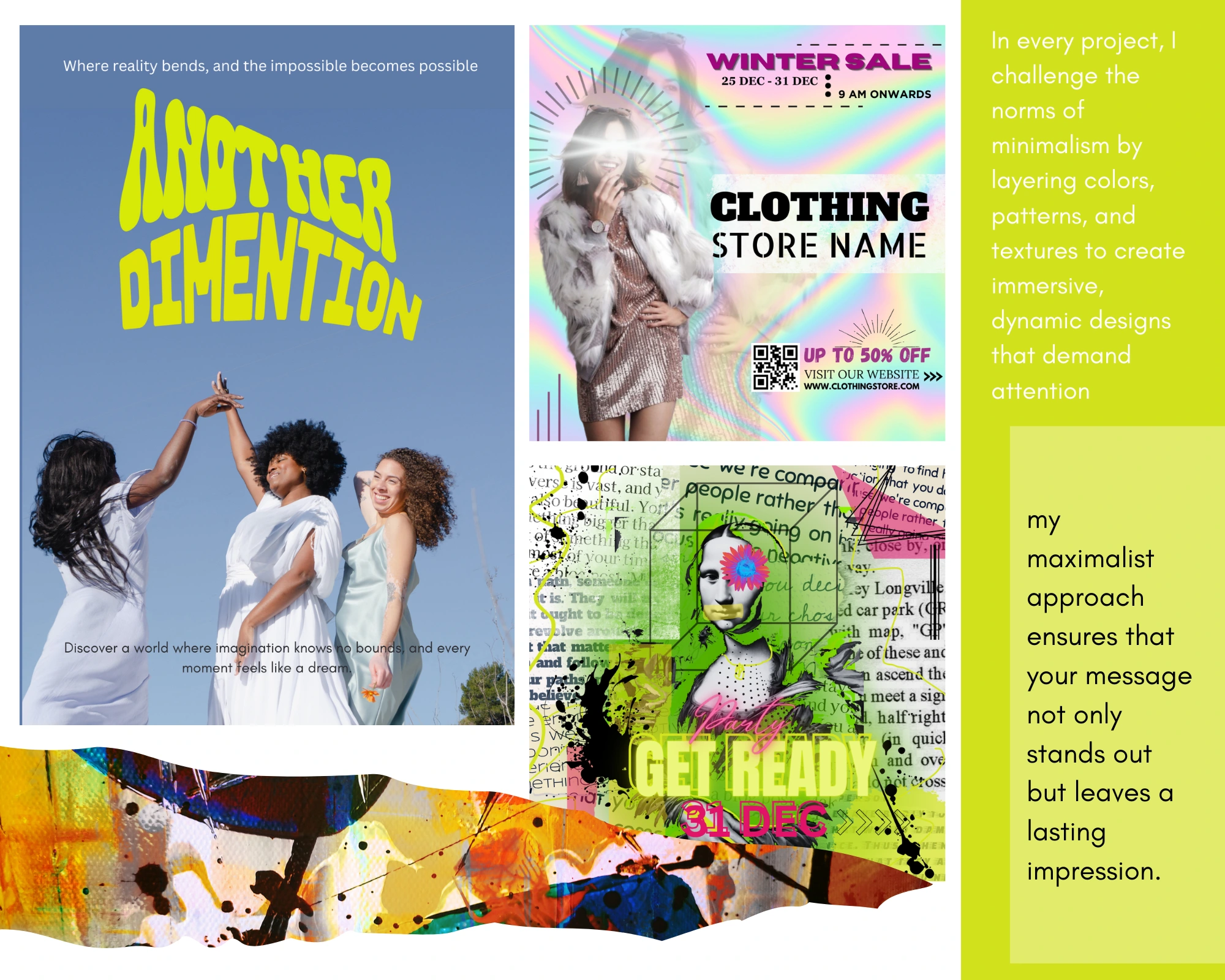 Each piece in this collection is designed to capture attention and evoke strong emotional responses. With intricate patterns, layered elements, and a fearless use of color, this project is a testament to the power of maximalist design in a digital age dominated by minimalism.