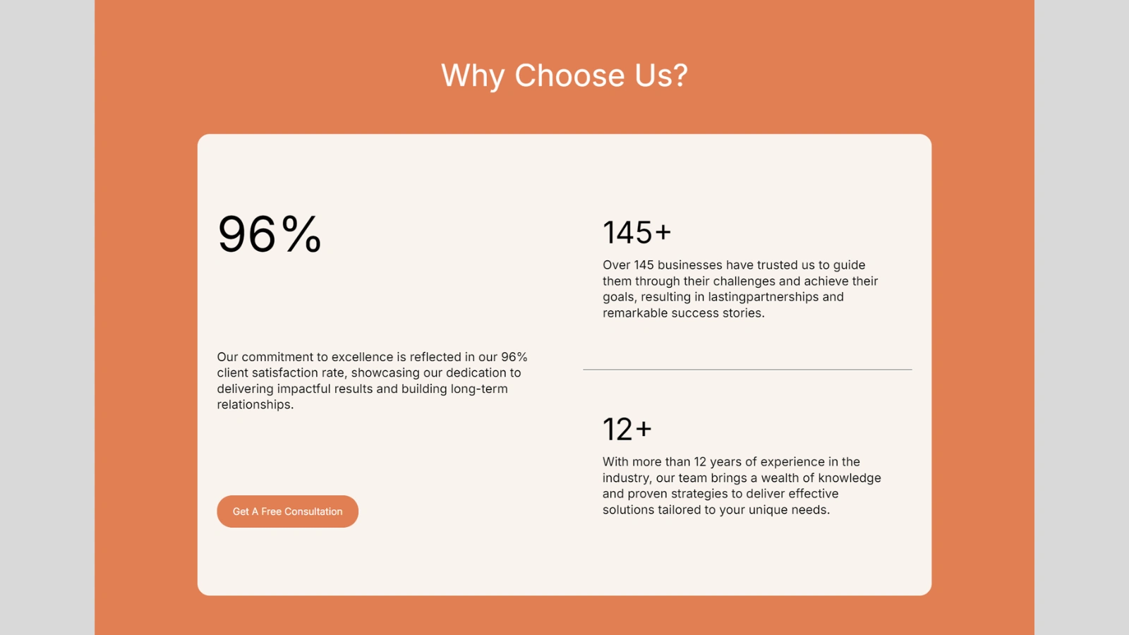 This consulting website template was designed to help consultants, coaches, and agencies establish a powerful digital presence—quickly and professionally. Built on Webflow, the template balances visual credibility with lead-generation-focused functionality.