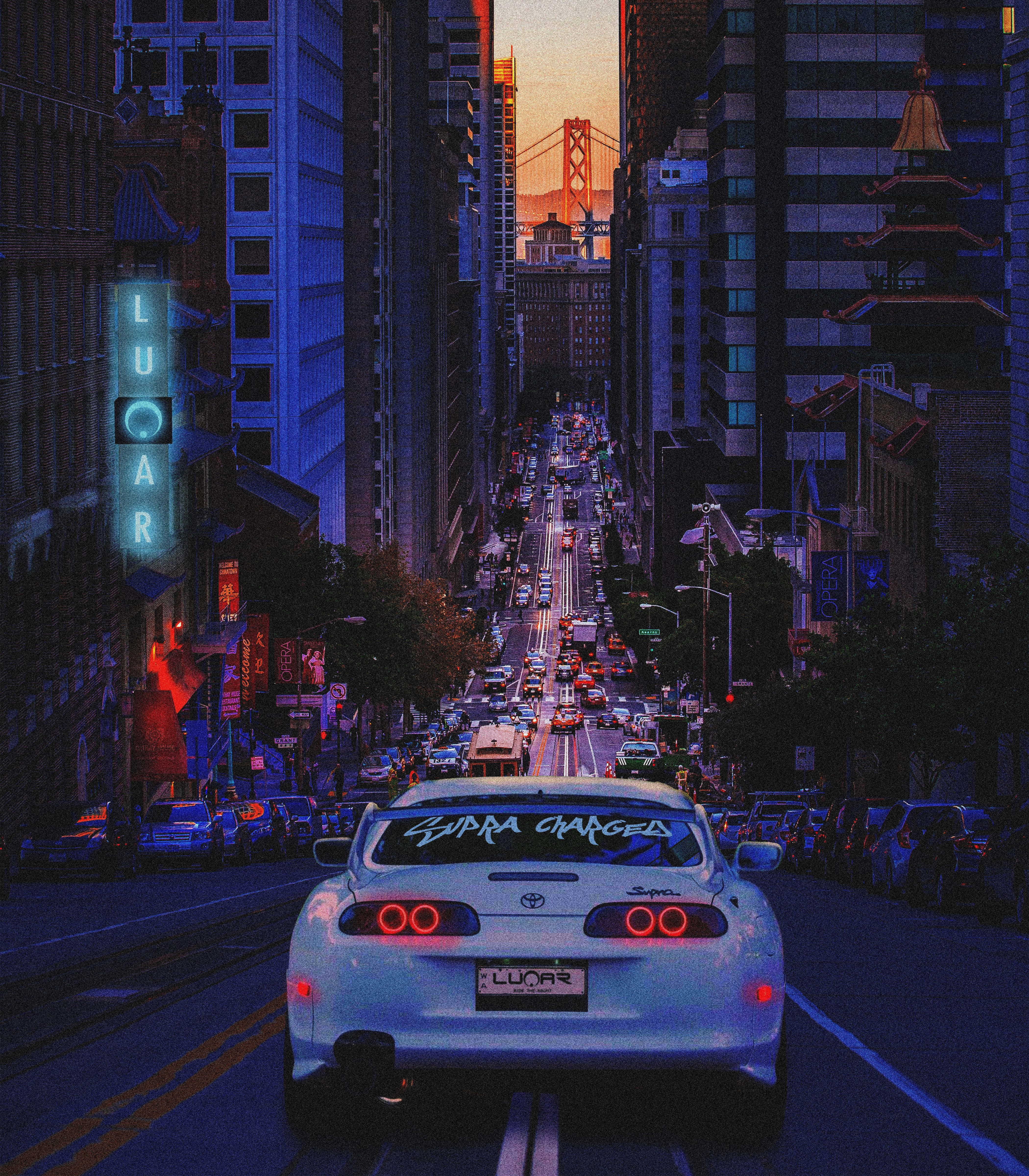 Blended Two to many separate images to create a seamless or nearly seamless combination to create a poster for car brands.