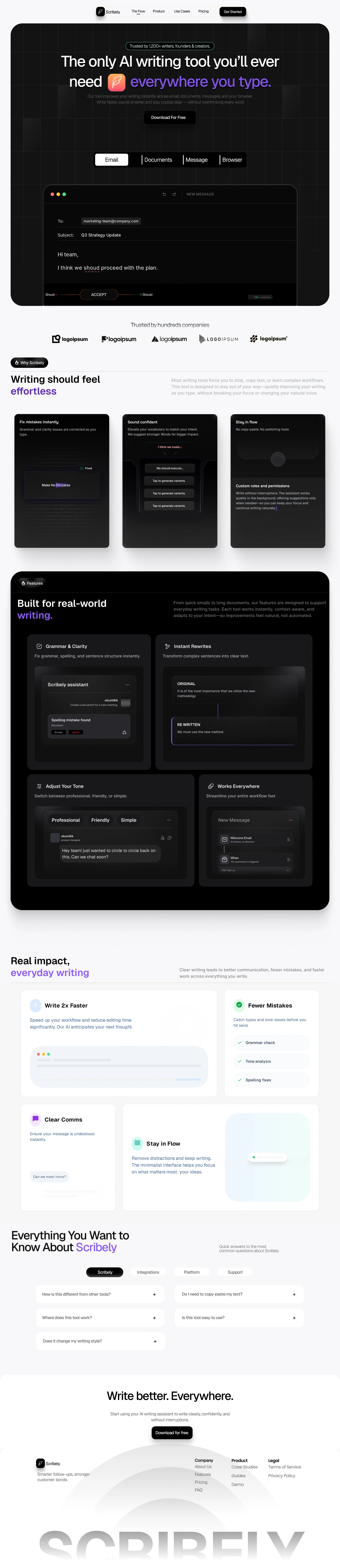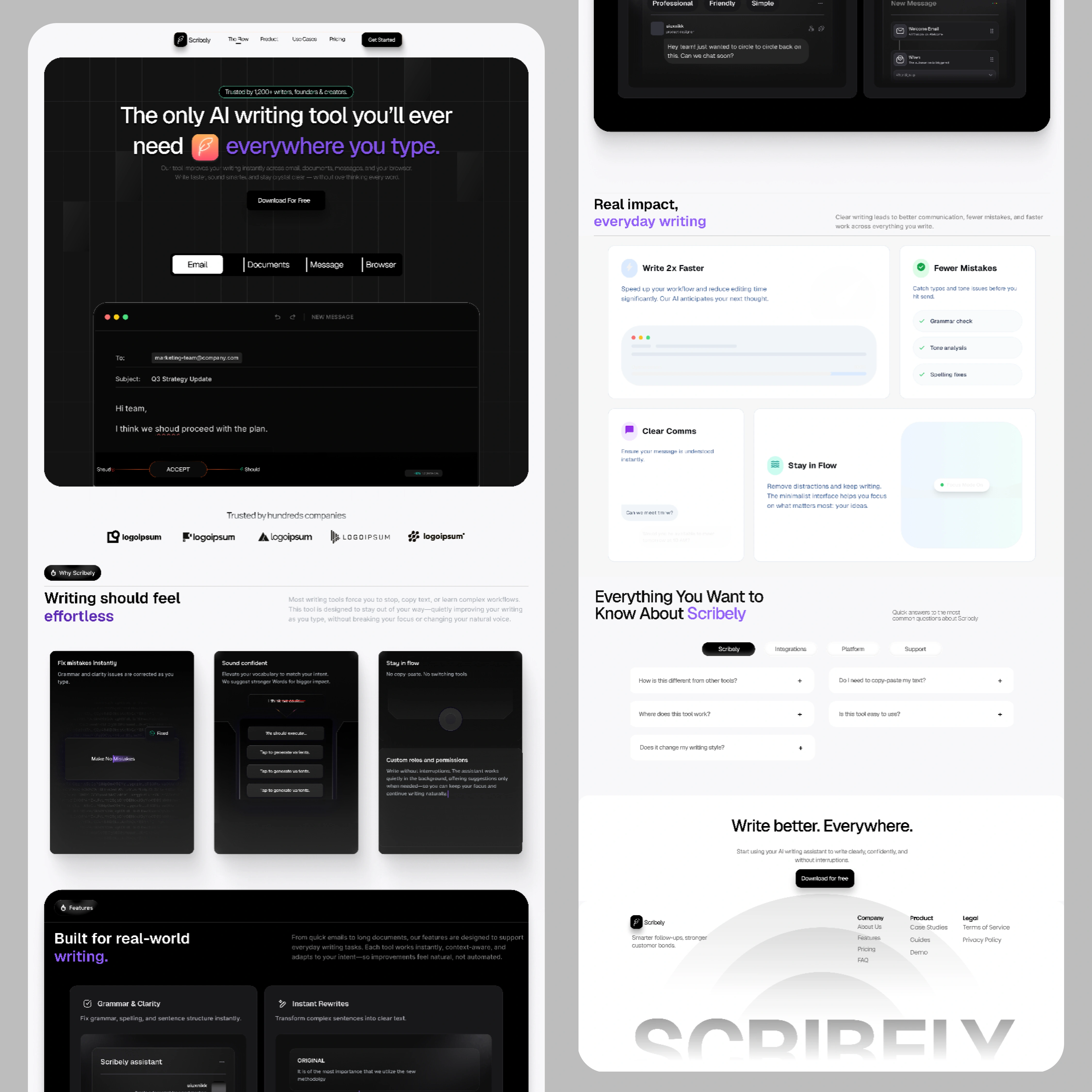 Designed a user-friendly landing page for Scribely AI, focused on clarity and usability.