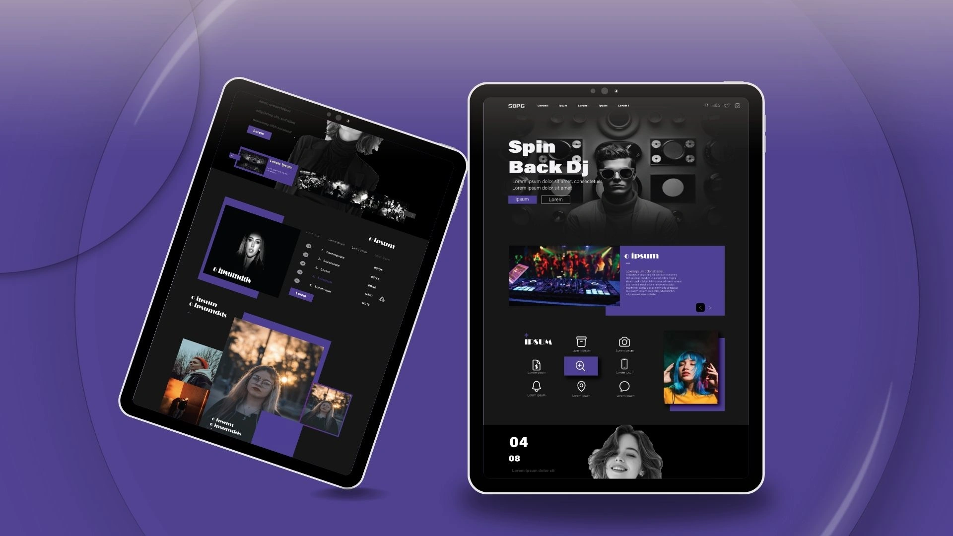 DJ Landing Page Design This is a modern and visually engaging landing page concept for a DJ/entertainment website. The design was created using Adobe Illustrator, inspired by a reference from Pinterest, with customized images and layout adjustments to achieve a unique look. The page focuses on a bold dark theme with vibrant purple accents, smooth sections, and a clean structure suitable for showcasing music, events, and artist profiles.