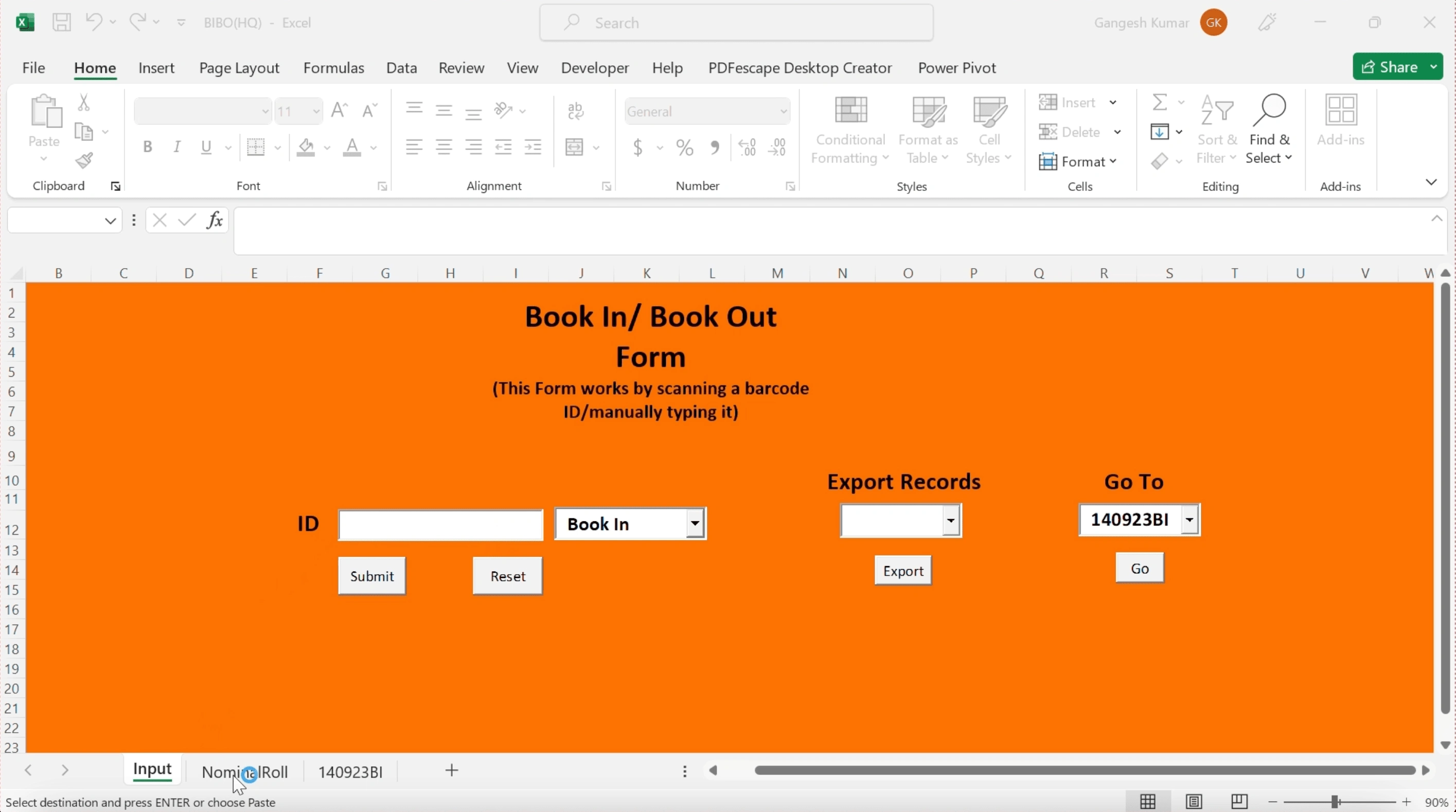Simple time check. Users will scan their ID and the sheet will record down the date and time. Includes odd check in and check out to account for odd timings.
