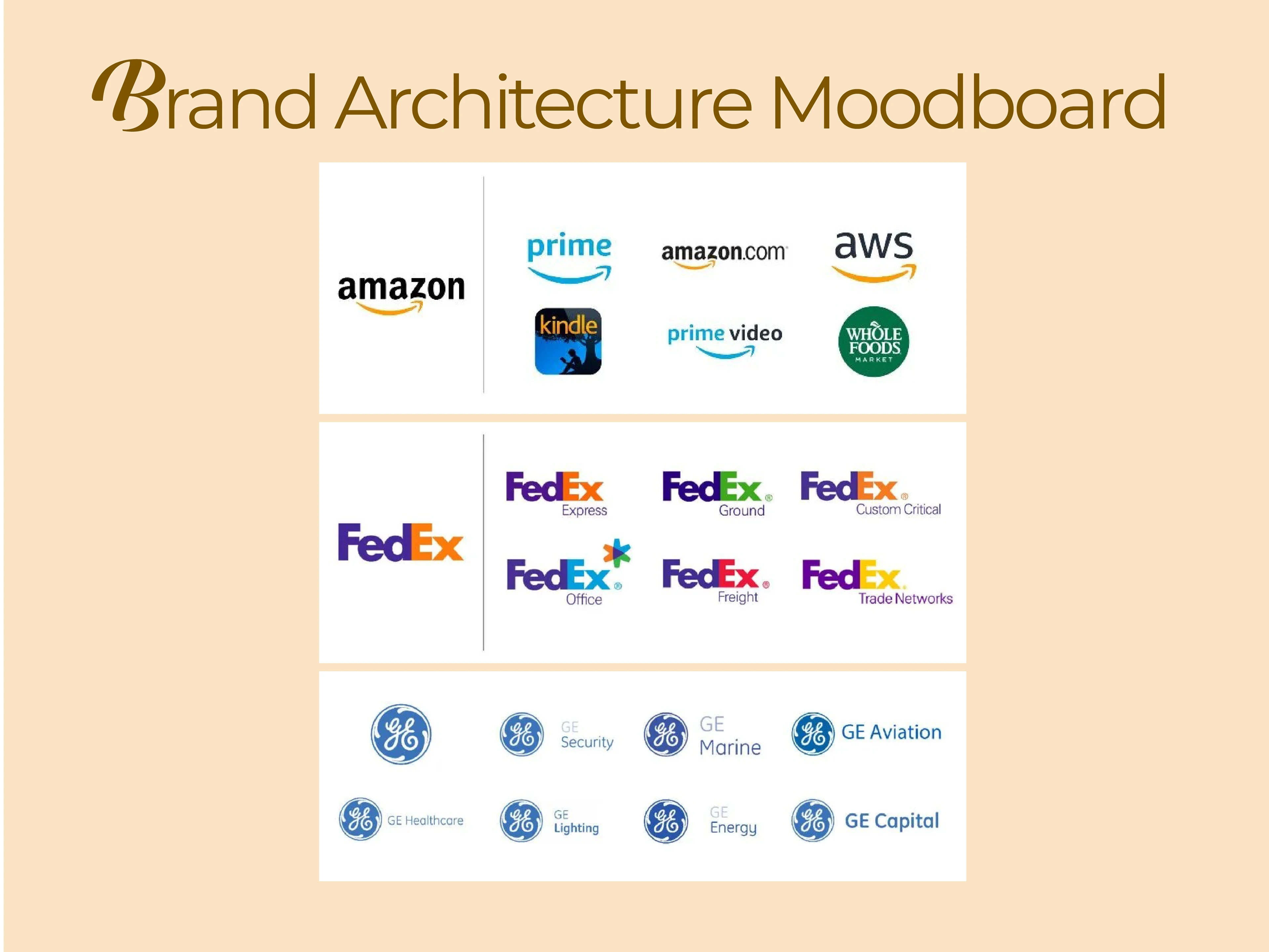 A color-coded hierarchy where the parent brand holds earthy gold and beige, while sub-brands own distinct, meaningful accent palettes