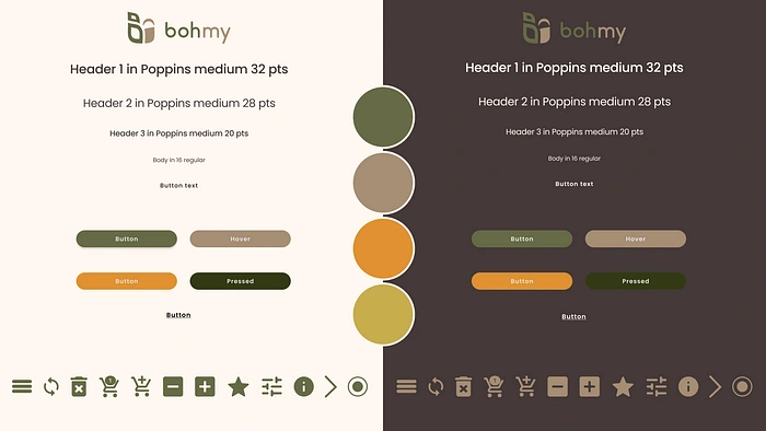 Before jumping straight into including colours and styles, we had a systematic approach by firstly coming up with brand attributes that sum up the essence of Bohmy that led us to making a moodboard
