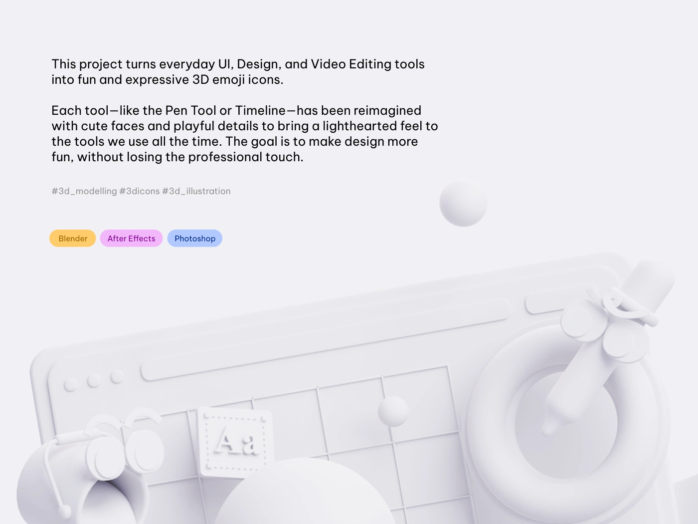 This project turns UI and design tools into fun 3D emoji icons. Reimagined with cute faces, they bring a playful feel to work while keeping a professional touch